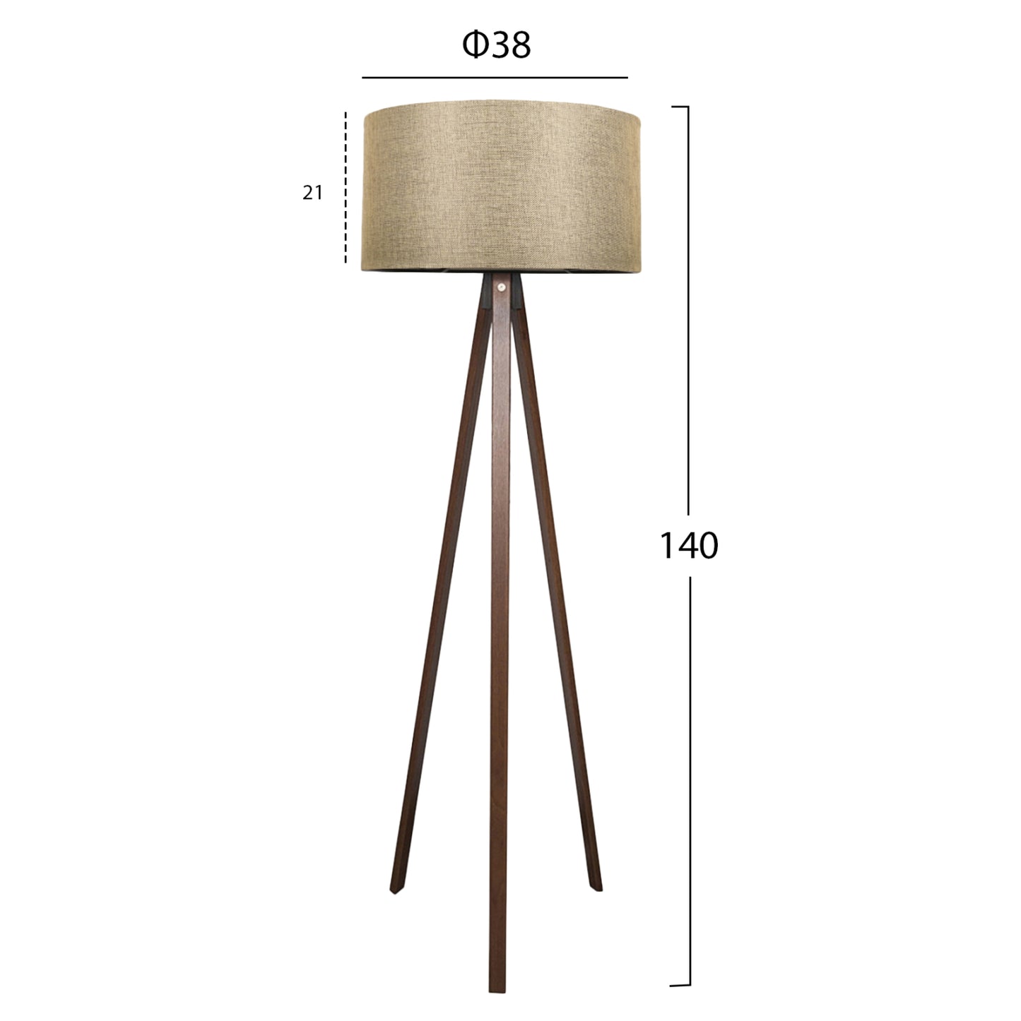 Φωτιστικό δαπέδου με τρίποδο από 100% MDF σε καρυδί χρώμα.