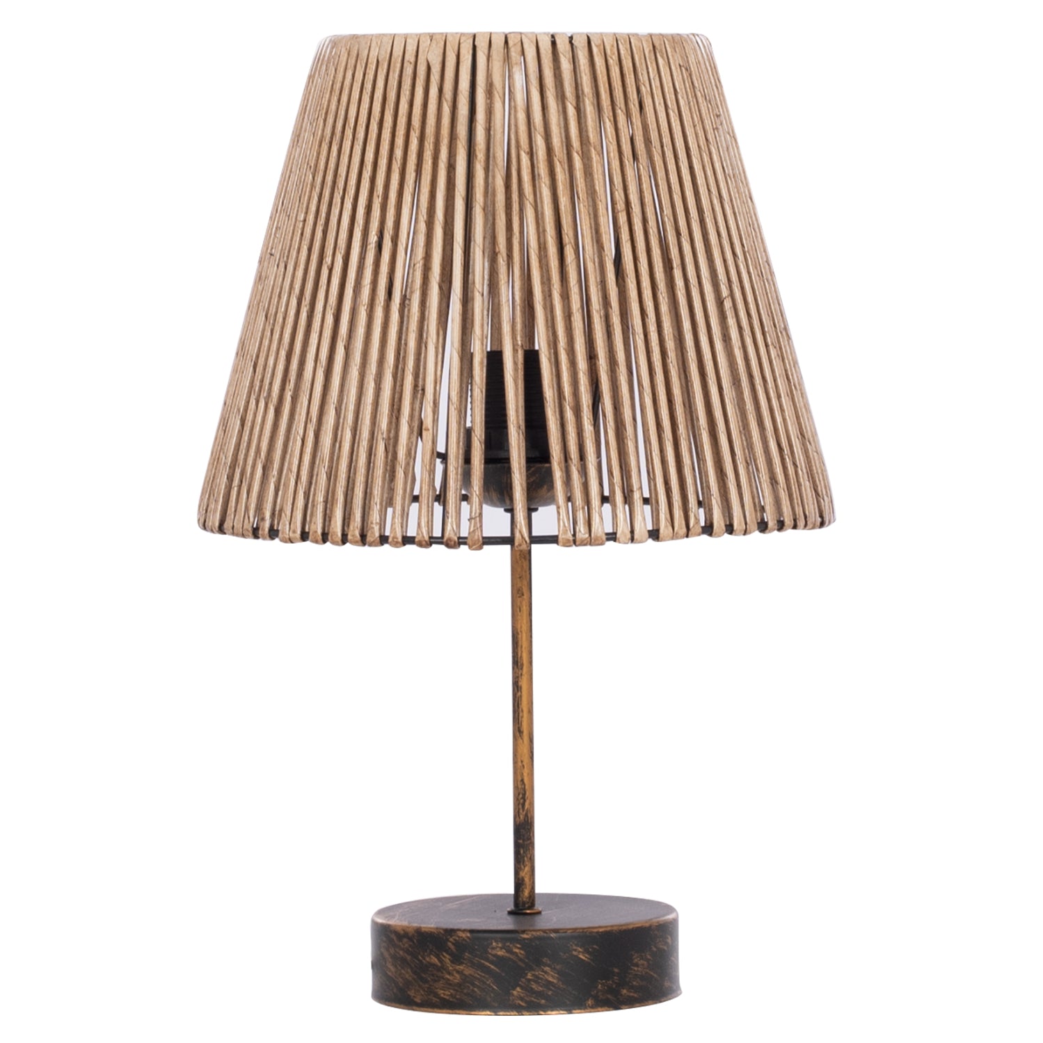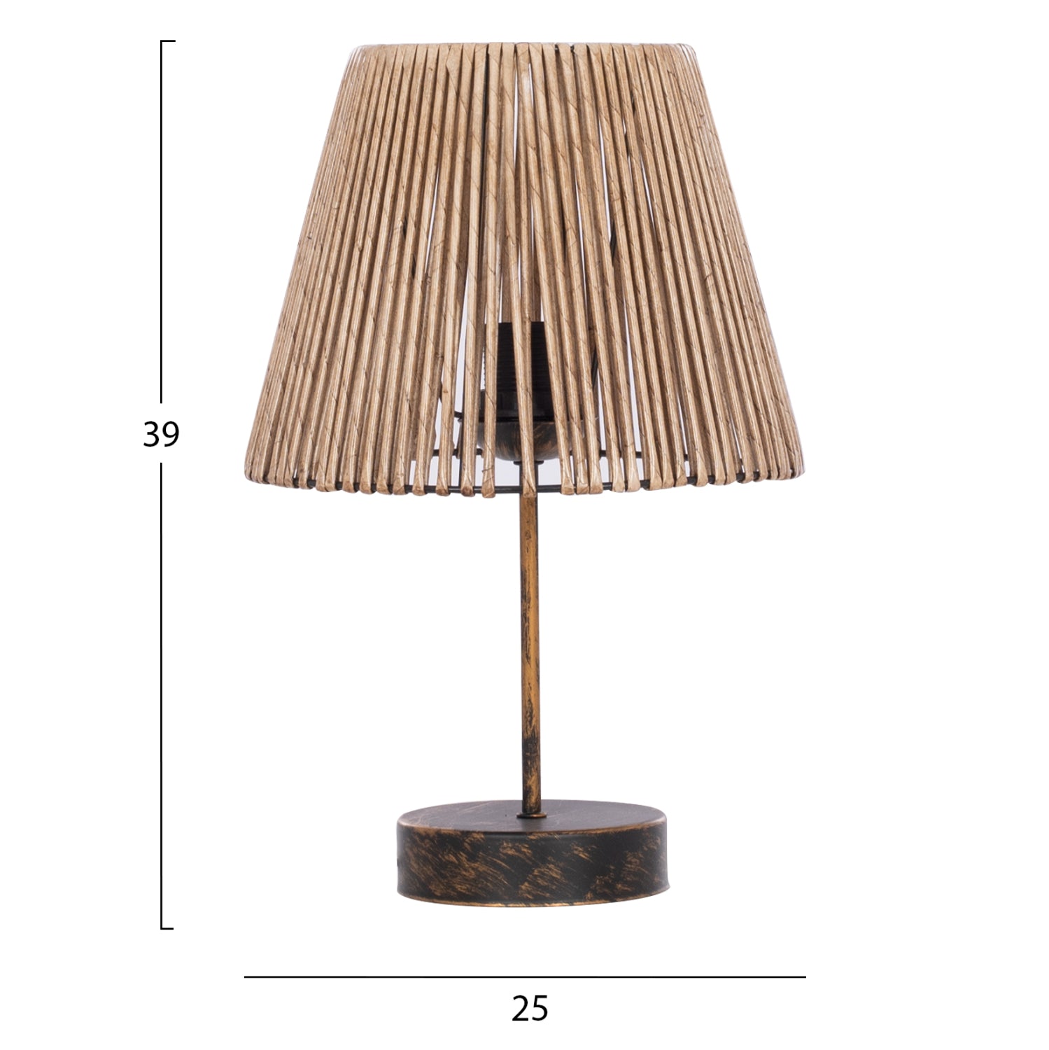 Επιτραπέζιο φωτιστικό, σε μπρονζέ απόχρωση με bamboo καπέλο σε φυσική απόχρωση.