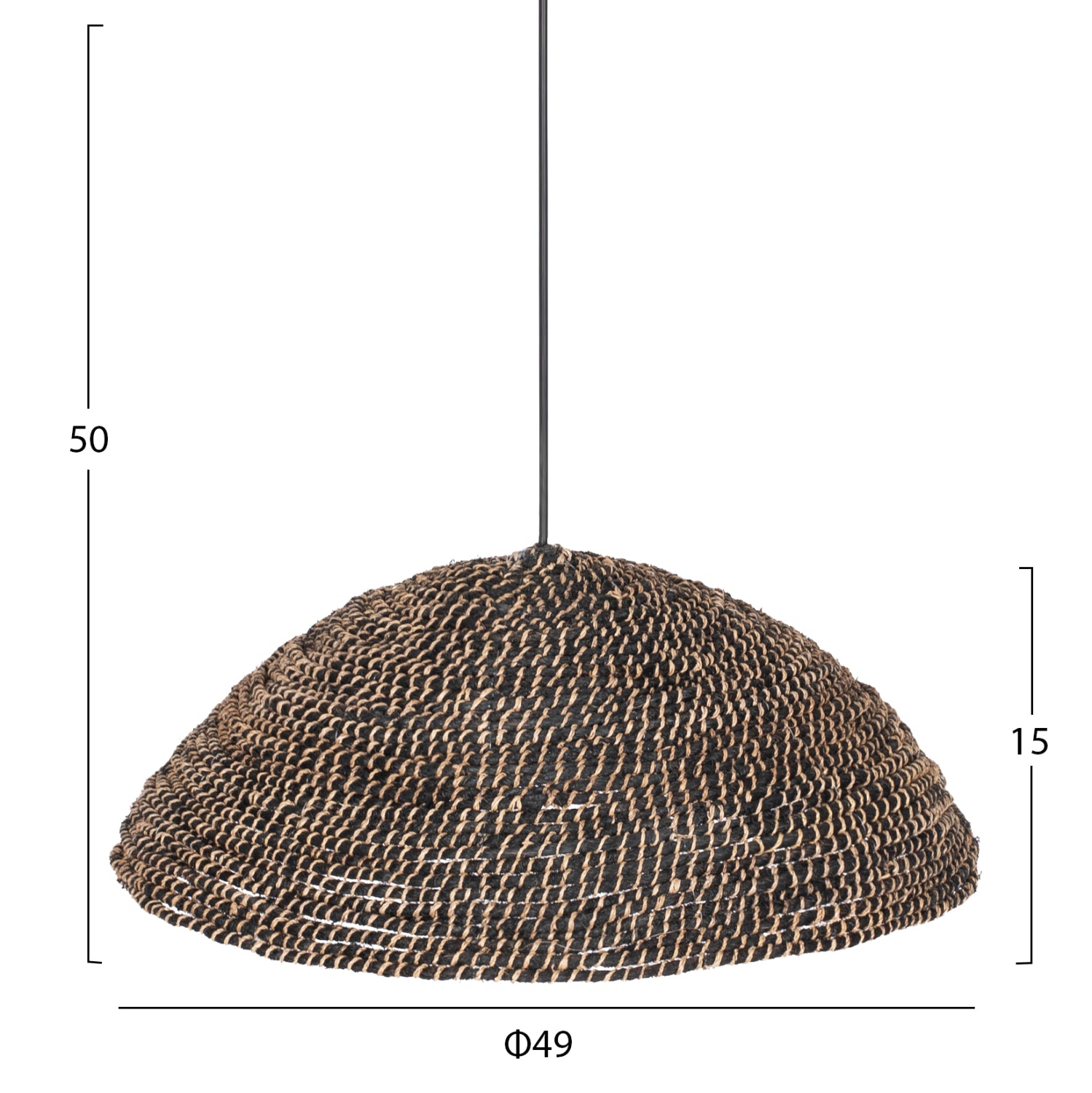 Hm7783- Kρεμαστό φωτιστικό---- Αν επιθυμείτε να διακοσμήσετε το χώρο σας με ένα φωτιστικό σε boho στυλ, αυτό είναι η πιο σωστή επιλογή. Είναι ένα μονόφωτο φωτιστικό και για επαγγελματική χρήση, με φαρδύ «καπέλο» σε ανοιχτό σχήμα και μαύρο χρώμα, φτιαγμένο από σκοινί, υψηλής ποιότητας και αντοχής στο χρόνο.