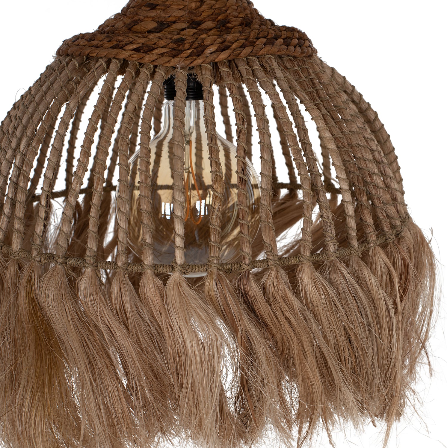 Hm7751- Kρεμαστό φωτιστικό---- Αν επιθυμείτε να διακοσμήσετε το χώρο σας με ένα φωτιστικό σε boho στυλ, αυτό είναι η πιο σωστή επιλογή. Είναι ένα μονόφωτο φωτιστικό για επαγγελματική χρήση, με «καπέλο» σε σχήμα καμπάνας φτιαγμένο από σκοινί, υψηλής ποιότητας και αντοχής στο χρόνο. Το ιδιαίτερο χαρακτηριστικό, όμως, αυτού του φωτιστικού είναι ότι το «καπέλο» καταλήγει σε κρόσια, επιτείνοντας ακόμα περισσότερο το boho στυλ.