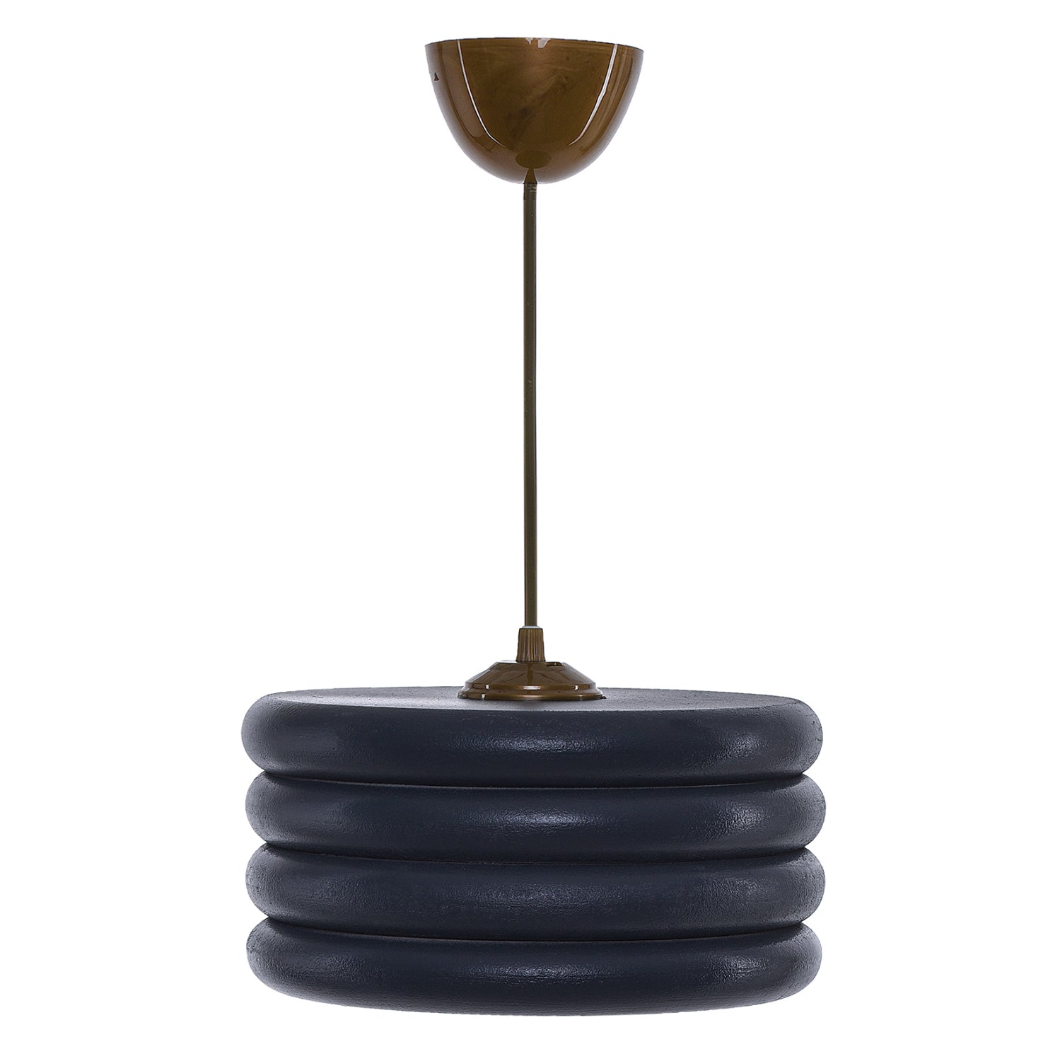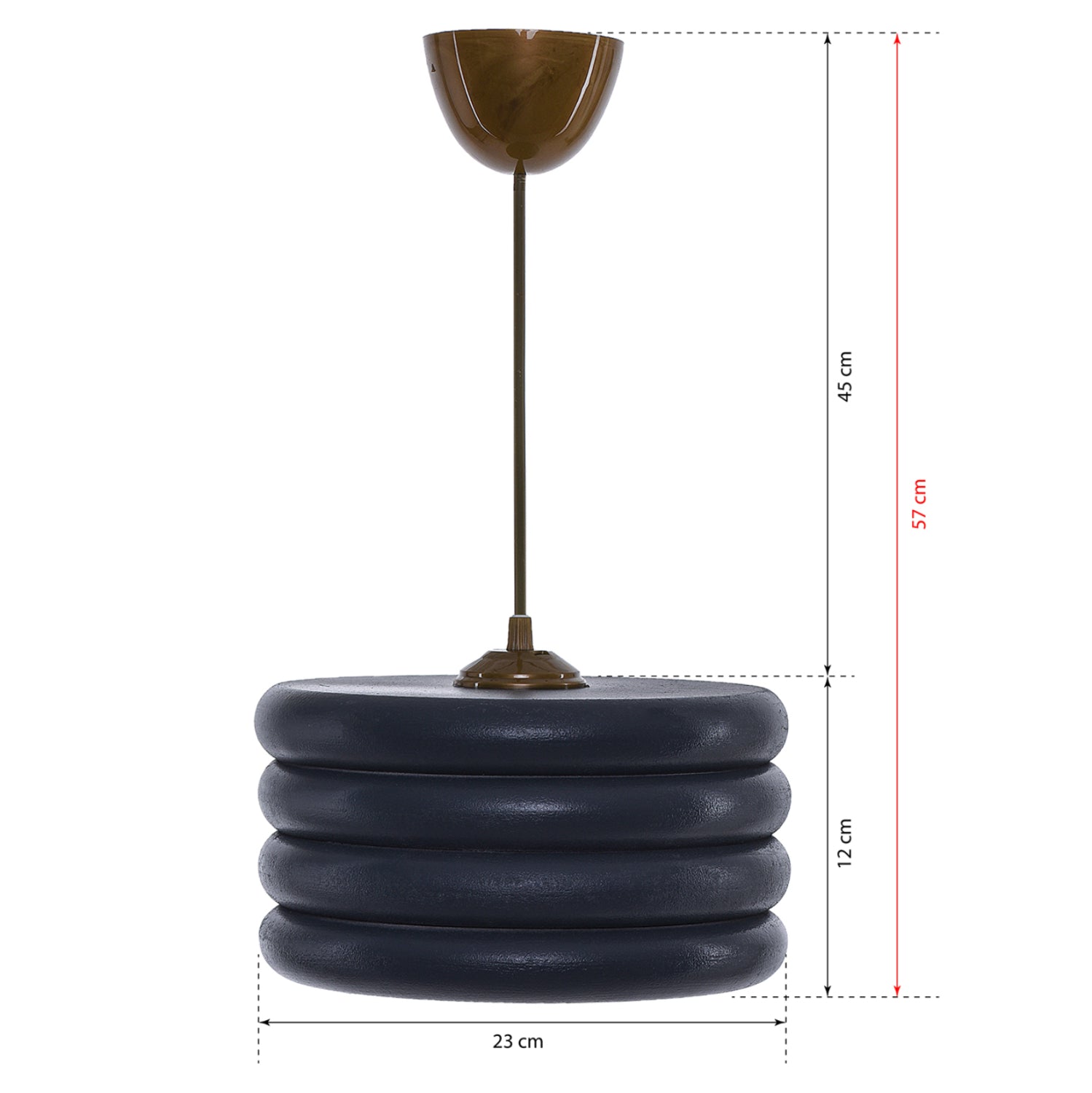 Hm7655.03- Kρεμαστό φωτιστικό---- Αφήστε το φως να απλωθεί στον χώρο με ένα πρωτότυπο και φινετσάτο μονόφωτο οροφής, ολοκληρώνοντας την διακόσμησή σας. Το ΗΜ7655.03 είναι ένα μονόφωτο φωτιστικό με το καπέλο να είναι ξύλινοι δακτύλιοι σε ΑΝΘΡΑΚΙ χρώμα και το καλώδιο κρεμάσματος με την βάση οροφής σε ΜΠΡΟΥΝΤΖΙΝΟ χρώμα.