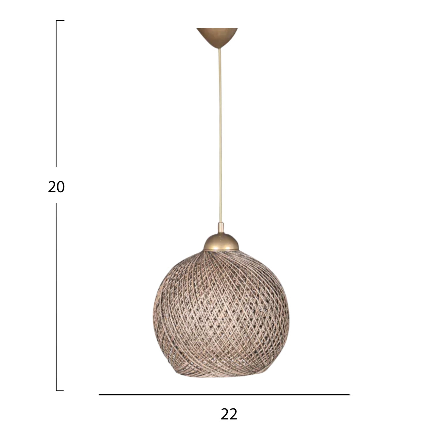 Η αισθητική υπεροχή αυτού του φωτιστικού θα το κάνει να ξεχωρίζει στον χώρο σας. Το ρυθμιζόμενο ύψος του μπορεί να προσφέρει διαφορετικά επίπεδα φωτεινότητας και οπτικής απόλαυσης. Εκτός από διάφορα δωμάτια του σπιτιού σας, μπορεί, επίσης, να ταιριάξει και σε επαγγελματικούς χώρους όπως εστιατόρια, καφέ, ξενοδοχεία κτλ. Το χρυσό χρώμα της σφαίρας σε συνδυασμό με το καλώδιο κρεμάσματος αιχμαλωτίζει τα βλέμματα, και μπορεί να αλλάξει άμεσα την διάθεση σας. Το φως διαχέεται εκπληκτικά στον χώρο διαμέσου της πλέξης της σφαίρας και δημιουργεί αμυδρά το σχέδιο της πλέξης στους τοίχους. Ταυτόχρονα μπορεί να συνδυαστεί με πολλά άλλα υλικά και σχέδια για να αναδείξει πλήρως τις αισθητικές αρετές του φωτιστικού, μιας και το σχοινί είναι ιδανικό για τη σύνθεση κομψών χώρων διαβίωσης, με άπειρους συνδυασμούς με ασυνήθιστες πινελιές.