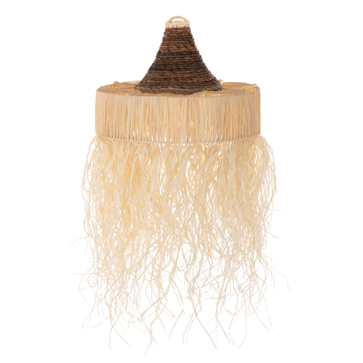 Hm7854- Kρεμαστό φωτιστικό---- Αν επιθυμείτε να διακοσμήσετε το χώρο σας με ένα φωτιστικό σε boho στυλ με εξωτικά υλικά, αυτό είναι μια χαρακτηριστική επιλογή. Είναι ένα μονόφωτο με «καπέλο» σε κυλινδρικό σχήμα φτιαγμένο από ίνες φύλλων φοίνικα με κρόσια, σε ΦΥΣΙΚΟ χρώμα. Διαθέτει και χερούλι κρέμασης.