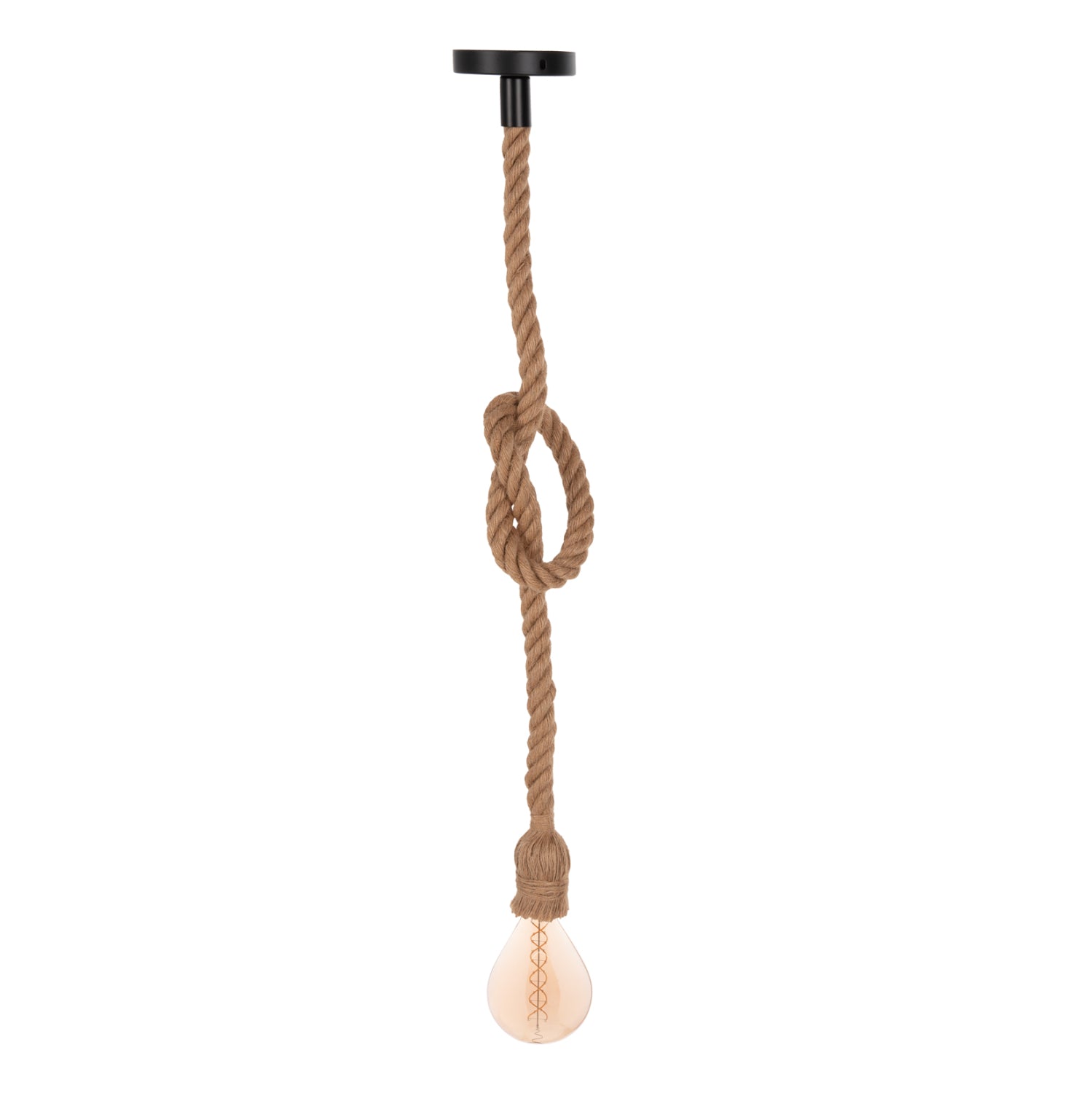 Θέλετε να ξεχωρίσετε και να δημιουργήσετε μια εντελώς διαφορετική αίσθηση στο σπίτι ή στην επιχείρησή σας; Αυτό το φωτιστικό οροφής με την μία λάμπα που κρέμεται από σχοινί και με το ντουί ΚΑΛΥΜΜΕΝΟ από αυτό το σχοινί, είναι σίγουρο ότι θα τραβήξει όλα τα βλέμματα και θα ξεκινήσει συζητήσεις. Αφήστε το απλά να κρέμεται ή φτιάξτε έναν κόμπο όπως εσείς θέλετε, έτσι ώστε να δώσετε την προσωπική σας πινελιά στον χώρο. Άλλωστε αυτό θα πρέπει να είναι και ένα από τα κυριότερα χαρακτηριστικά του φωτισμού. Να αντανακλά τον χαρακτήρα και την προσωπικότητα του ιδιοκτήτη! Ο φωτισμός είναι το κόσμημα του σπιτιού ή του επαγγελματικού σας χώρου.
