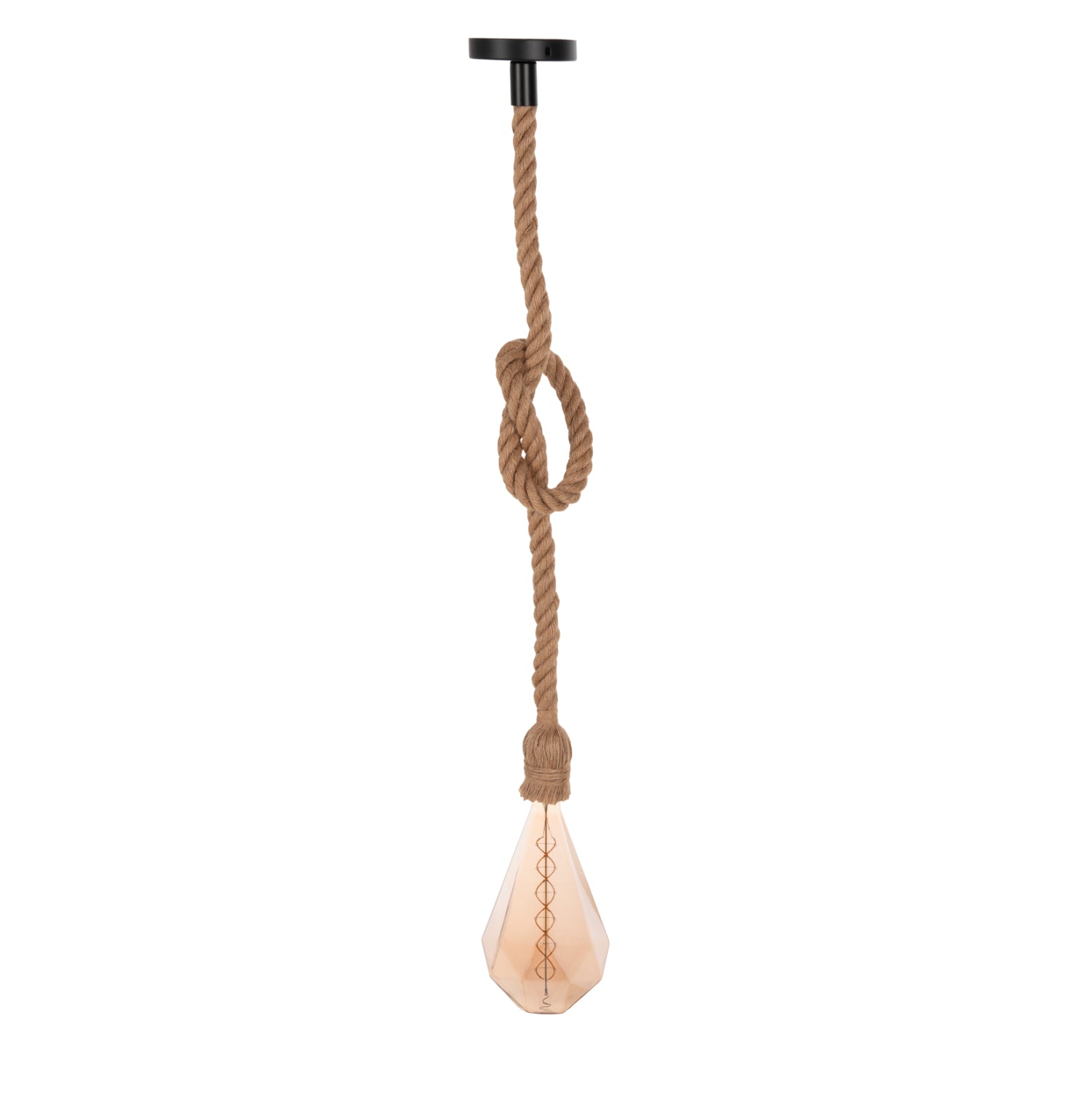 Θέλετε να ξεχωρίσετε και να δημιουργήσετε μια εντελώς διαφορετική αίσθηση στο σπίτι ή στην επιχείρησή σας; Αυτό το φωτιστικό οροφής με την μία λάμπα με ιδιαίτερο design σαν διαμάντι που κρέμεται από σχοινί και με το ντουί ΚΑΛΥΜΜΕΝΟ από αυτό το σχοινί, είναι σίγουρο ότι θα τραβήξει όλα τα βλέμματα και θα ξεκινήσει συζητήσεις. Αφήστε το απλά να κρέμεται ή φτιάξτε έναν κόμπο όπως εσείς θέλετε, έτσι ώστε να δώσετε την προσωπική σας πινελιά στον χώρο. Άλλωστε αυτό θα πρέπει να είναι και ένα από τα κυριότερα χαρακτηριστικά του φωτισμού. Να αντανακλά τον χαρακτήρα και την προσωπικότητα του ιδιοκτήτη! Ο φωτισμός είναι το κόσμημα του σπιτιού ή του επαγγελματικού σας χώρου.