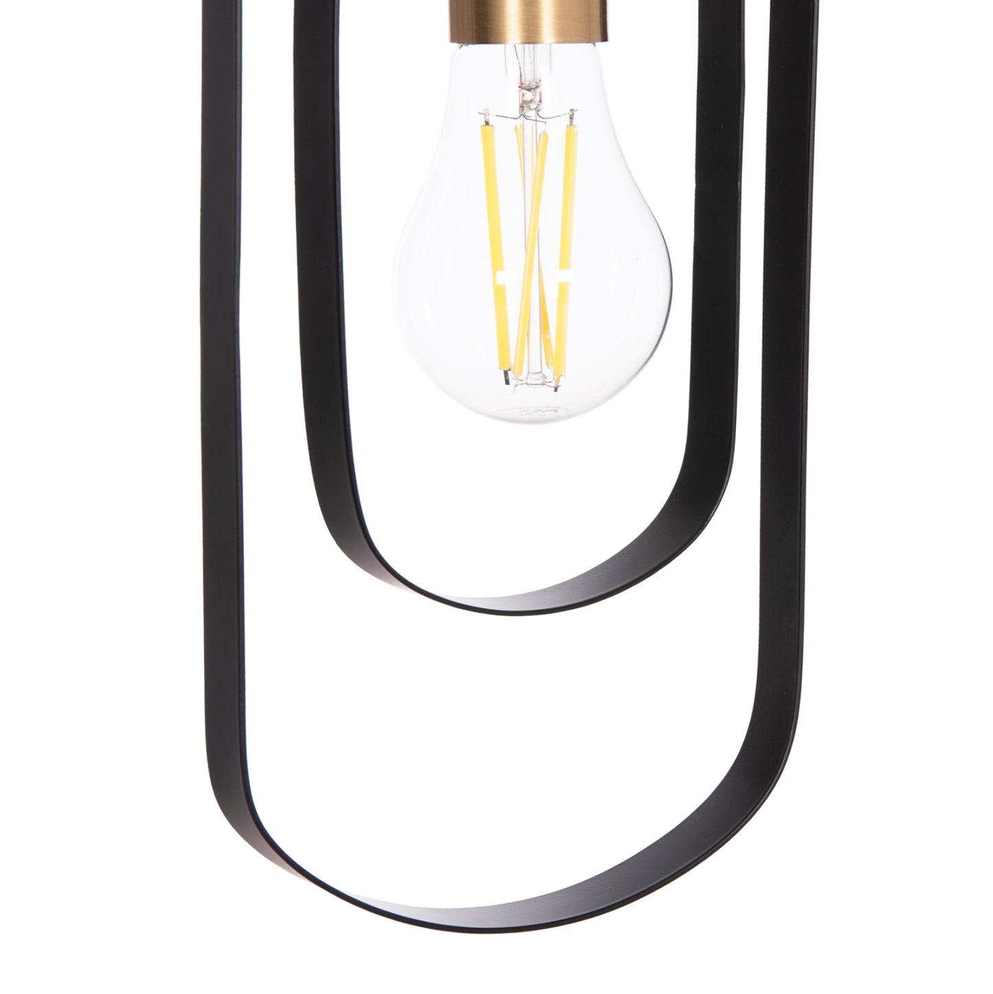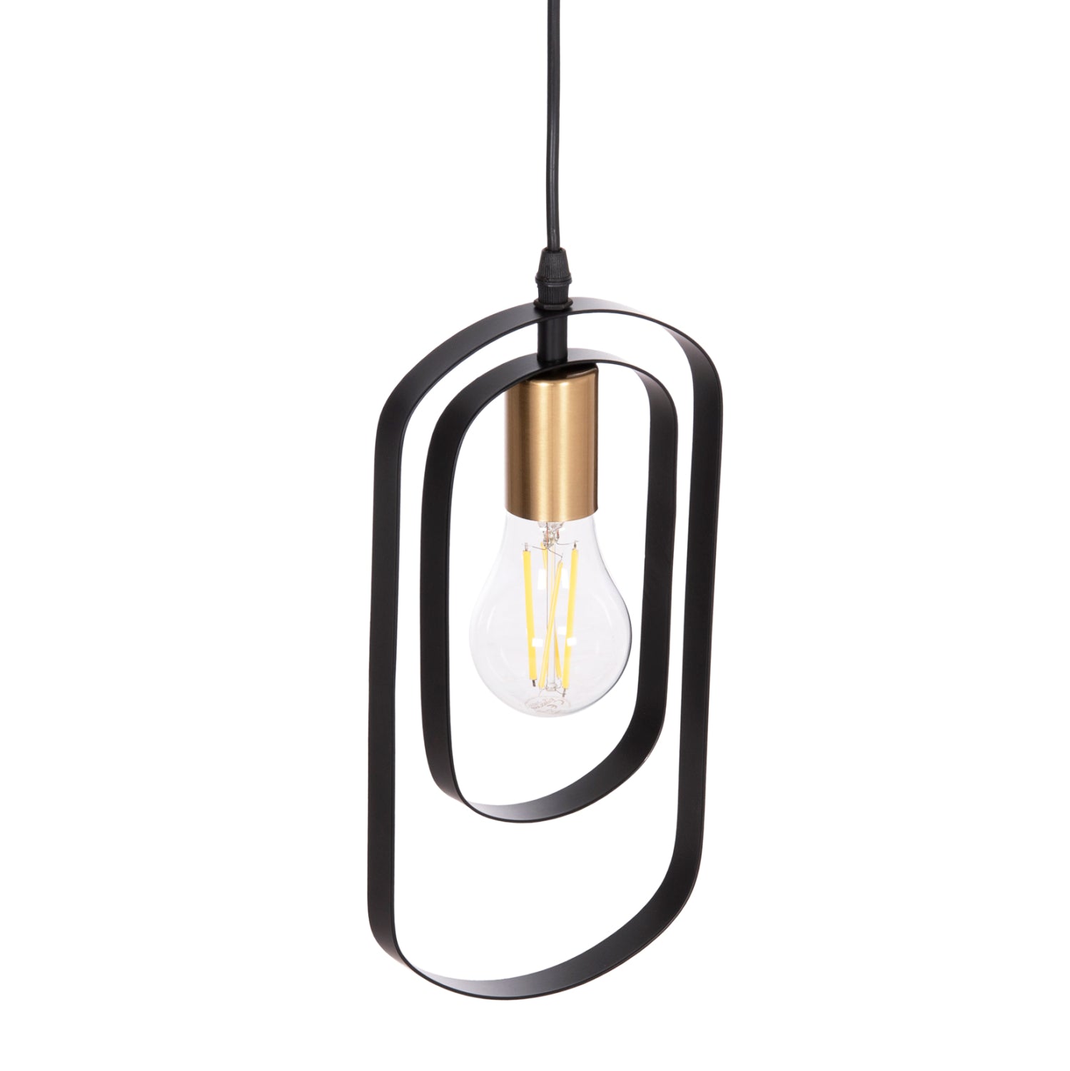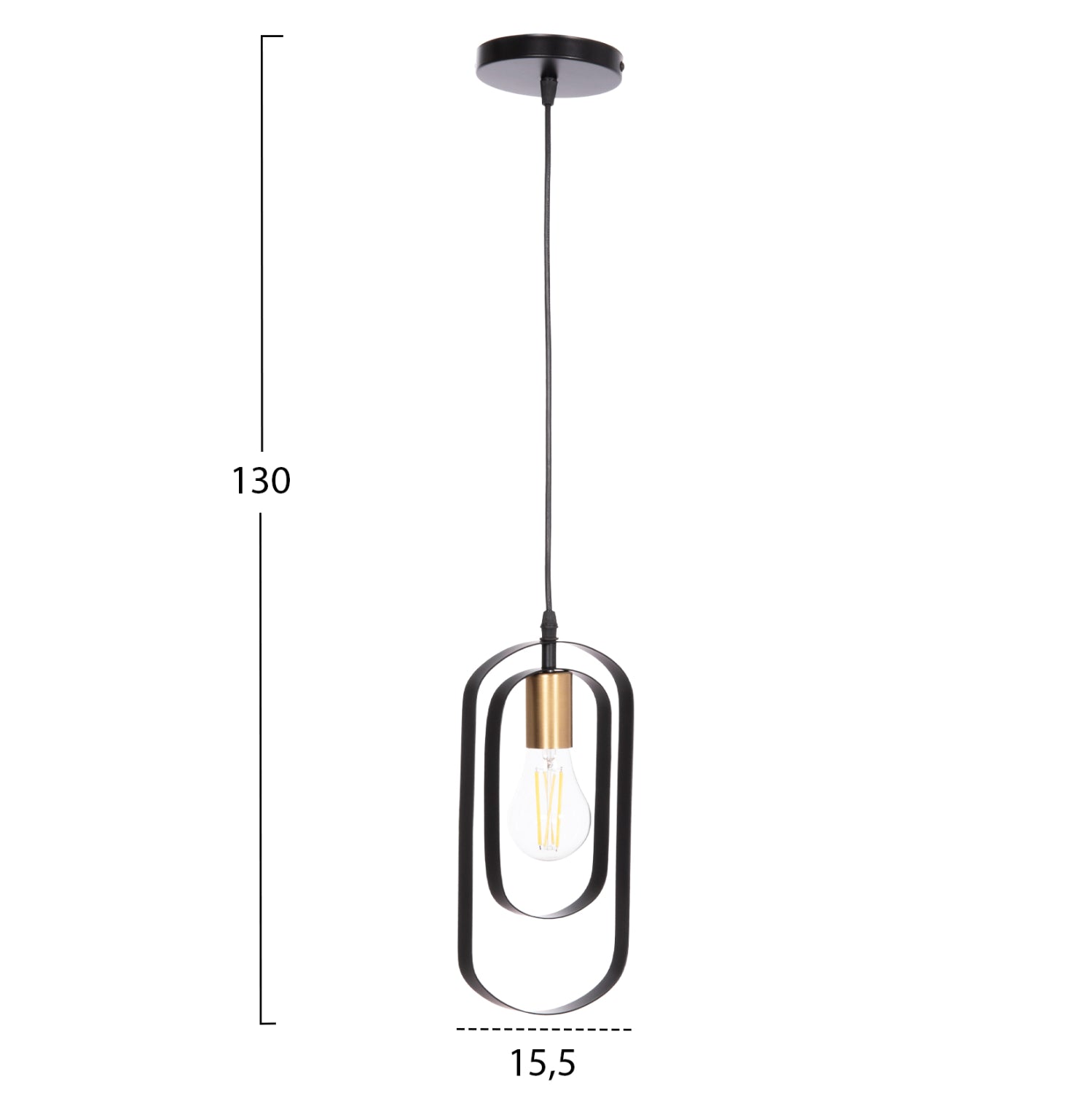 Το κρεμαστό φωτιστικό οροφής BIUT είναι ένα όμορφο κρεμαστό με μαύρη βάση και μαύρο καλώδιο κρέμασης. Η λάμπα τοποθετείται σε ντουί χρυσού χρώματος ενώ αυτό που τραβάει τα βλέμματα είναι το minimal design του καπέλου με τα δύο μεταλλικά πλαίσια.