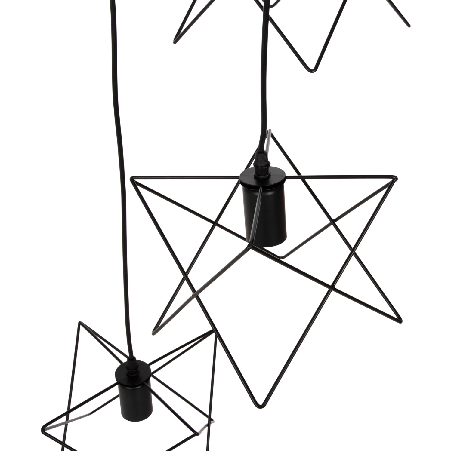 Αφήστε το φως να απλωθεί στον χώρο με ένα πρωτότυπο και φινετσάτο κρεμαστό 3-φωτο οροφής, ολοκληρώνοντας την διακόσμησή σας. Το σχήμα αστεριού με ΜΑΥΡΕΣ μεταλλικές ράβδους σε 3 διαφορετικά ύψη, είναι η επιτομή του μοντέρνου design.