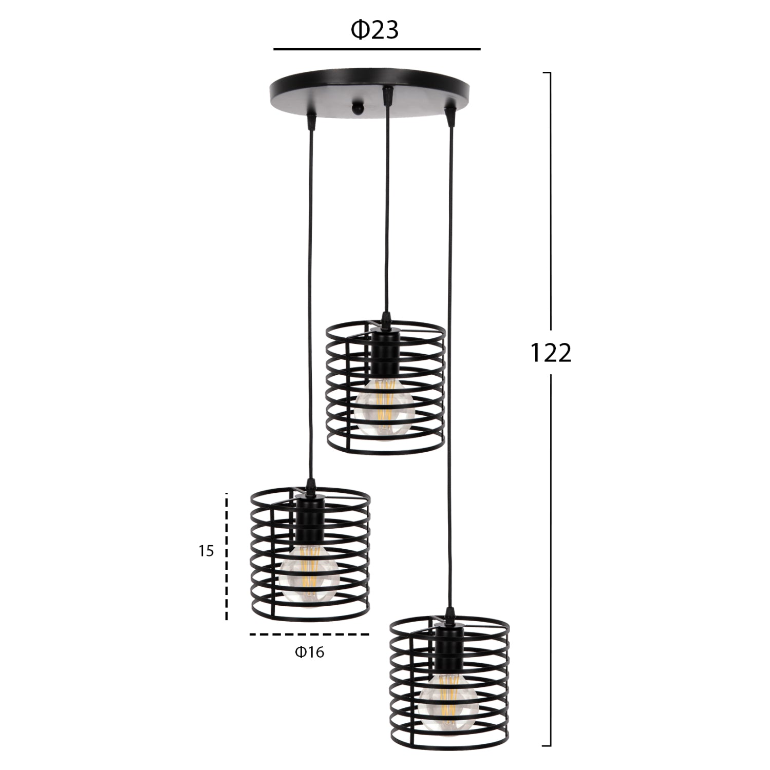 ΦΩΤΙΣΤΙΚΟ ΟΡΟΦΗΣ ΚΡΕΜΑΣΤΟ HM4091 3 ΜΑΥΡΟΙ ΜΕΤΑΛΛΙΚΟΙ ΚΥΛΙΝΔΡΟΙ Φ23x122Υεκ.