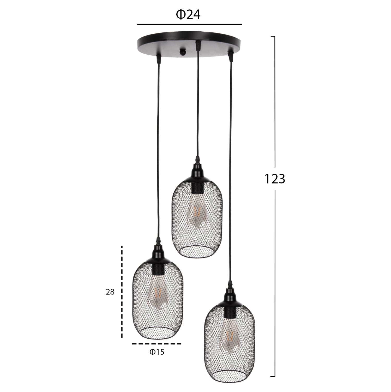 ΦΩΤΙΣΤΙΚΟ ΟΡΟΦΗΣ ΚΡΕΜΑΣΤΟ HM4104 3ΦΩΤΟ ΜΑΥΡΑ ΜΕΤΑΛΛΙΚΑ ΚΑΠΕΛΑ Φ24x123Υεκ.