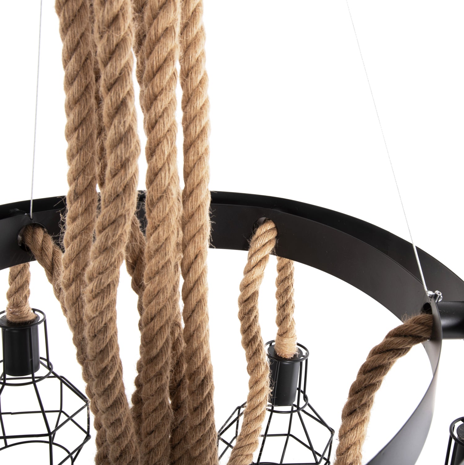 Ανακαλύψτε το νέο μας 6-φωτο κρεμαστό φωτιστικό οροφής, και μην διστάσετε να το εντάξετε στην διακόσμησή σας. Ο συνδυασμός σχοινιού και μετάλλου είναι ξεχωριστός, ενώ οι 6 λαμπτήρες σε μεταλλικούς κλωβούς θα «ρίξουν» φως σε κάθε γωνιά του δωματίου. Ιδανικό τόσο για το σπίτι, όσο και για επαγγελματικούς χώρους.