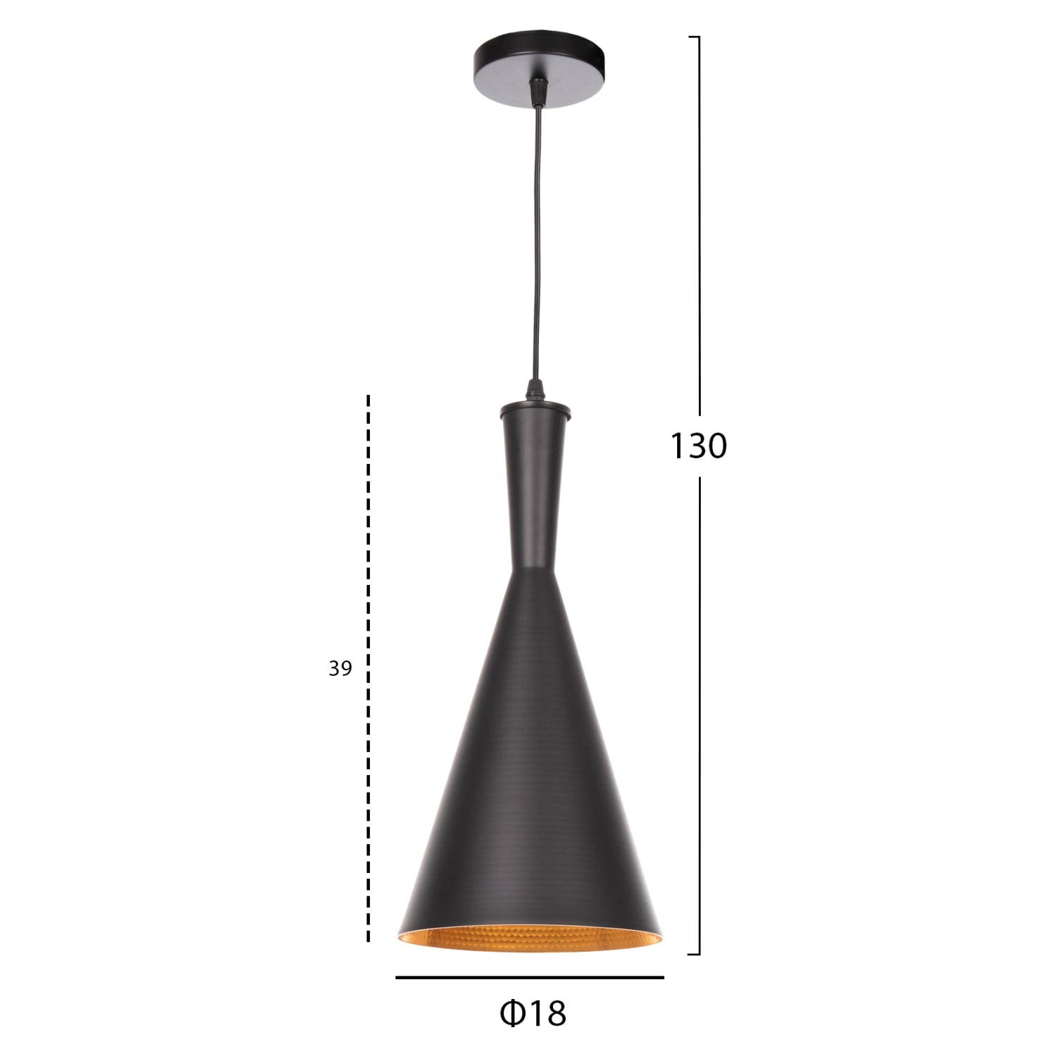 Ανακαλύψτε αυτό το νέο μας κρεμαστό φωτιστικό οροφής και ολοκληρώστε την διακόσμησή σας. Πρόκειται για ένα φωτιστικό με ΜΑΥΡΟ μεταλλικό καπέλο σε σχήμα μακρόστενης καμπάνας με χρυσή επιφάνεια στην εσωτερική πλευρά του φωτιστικού.