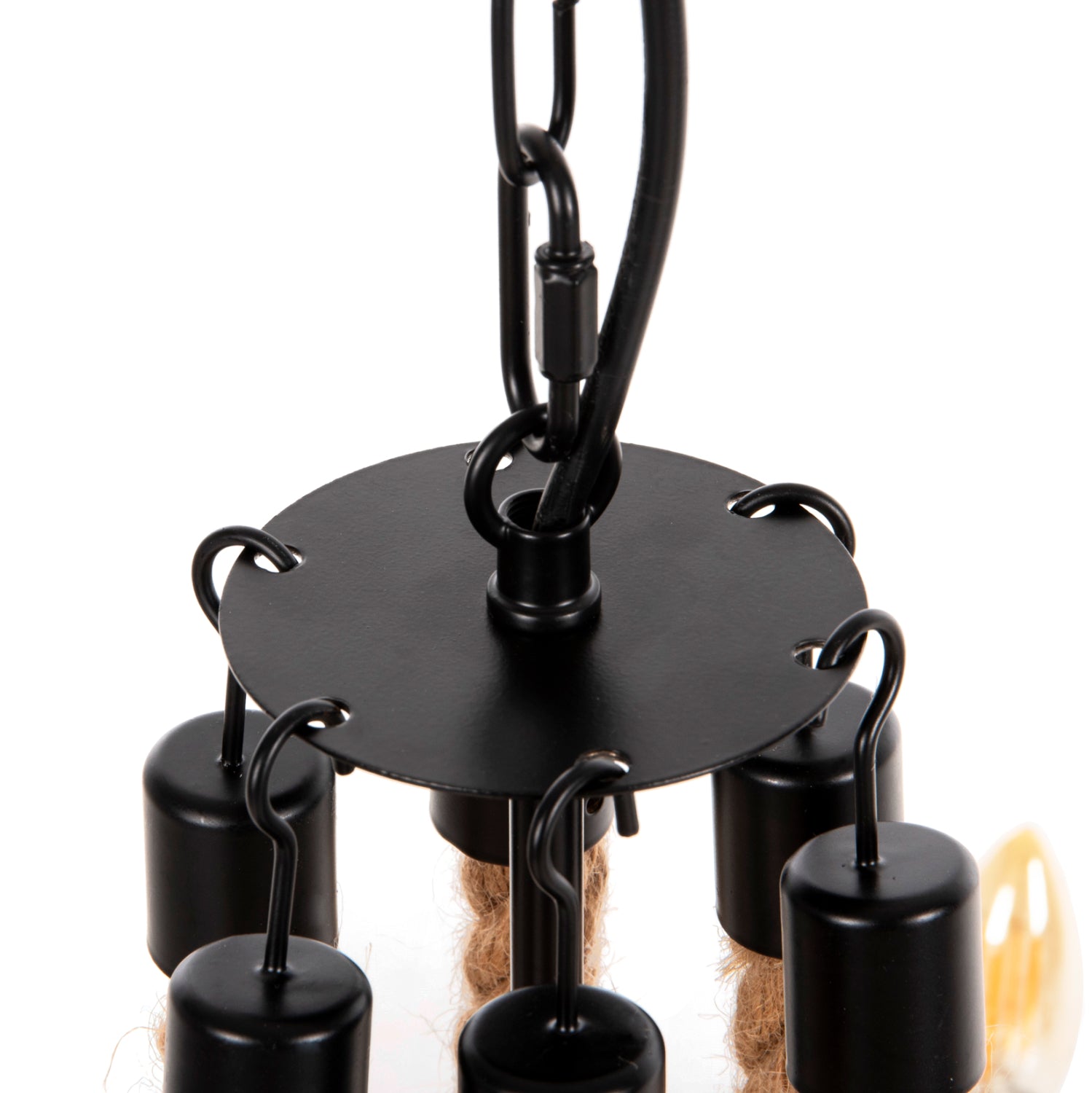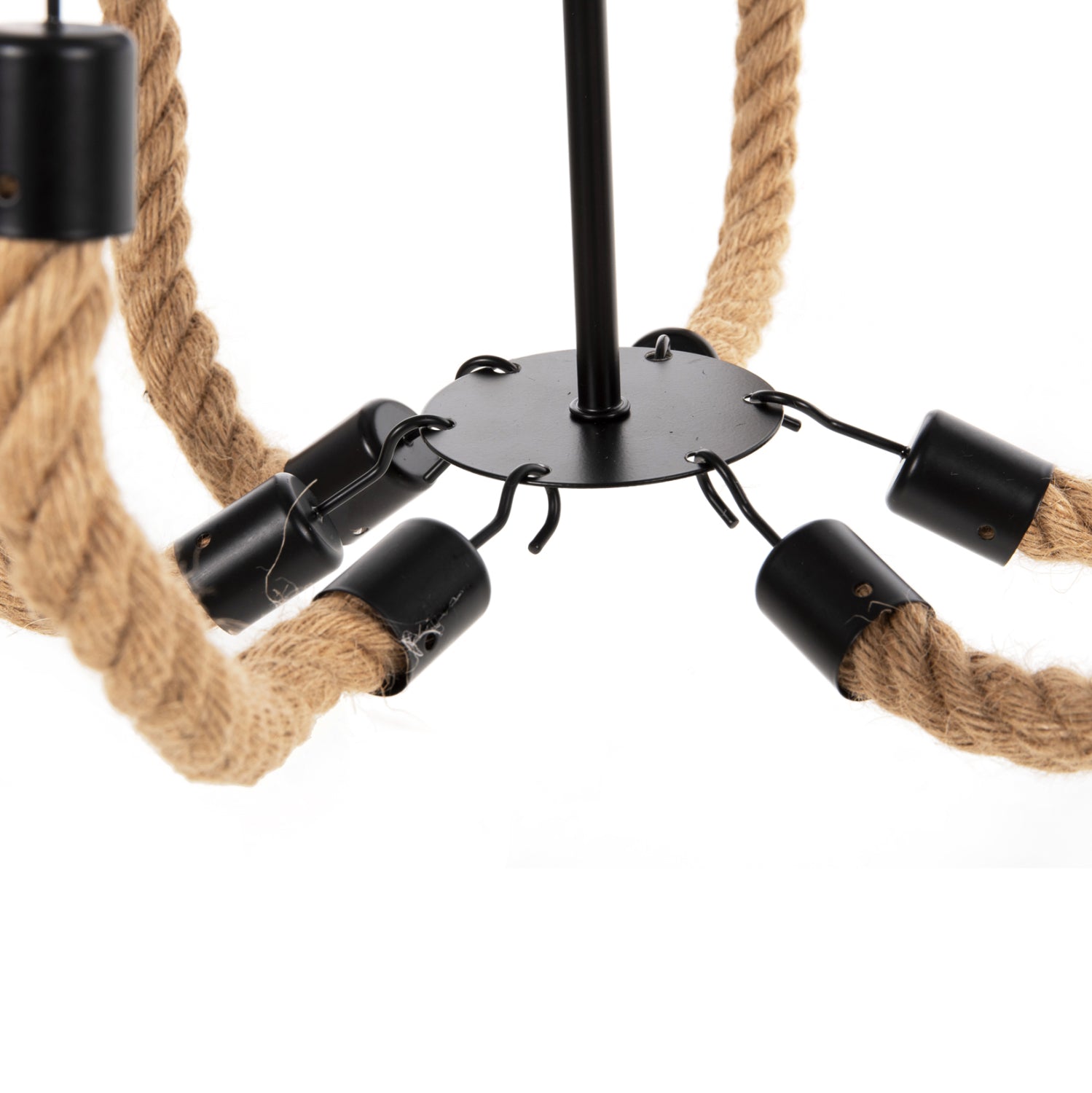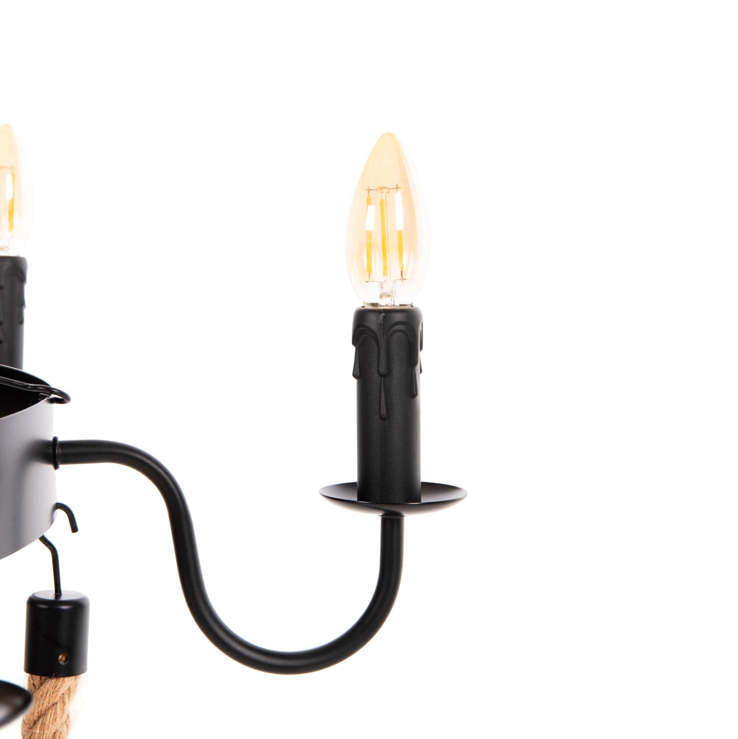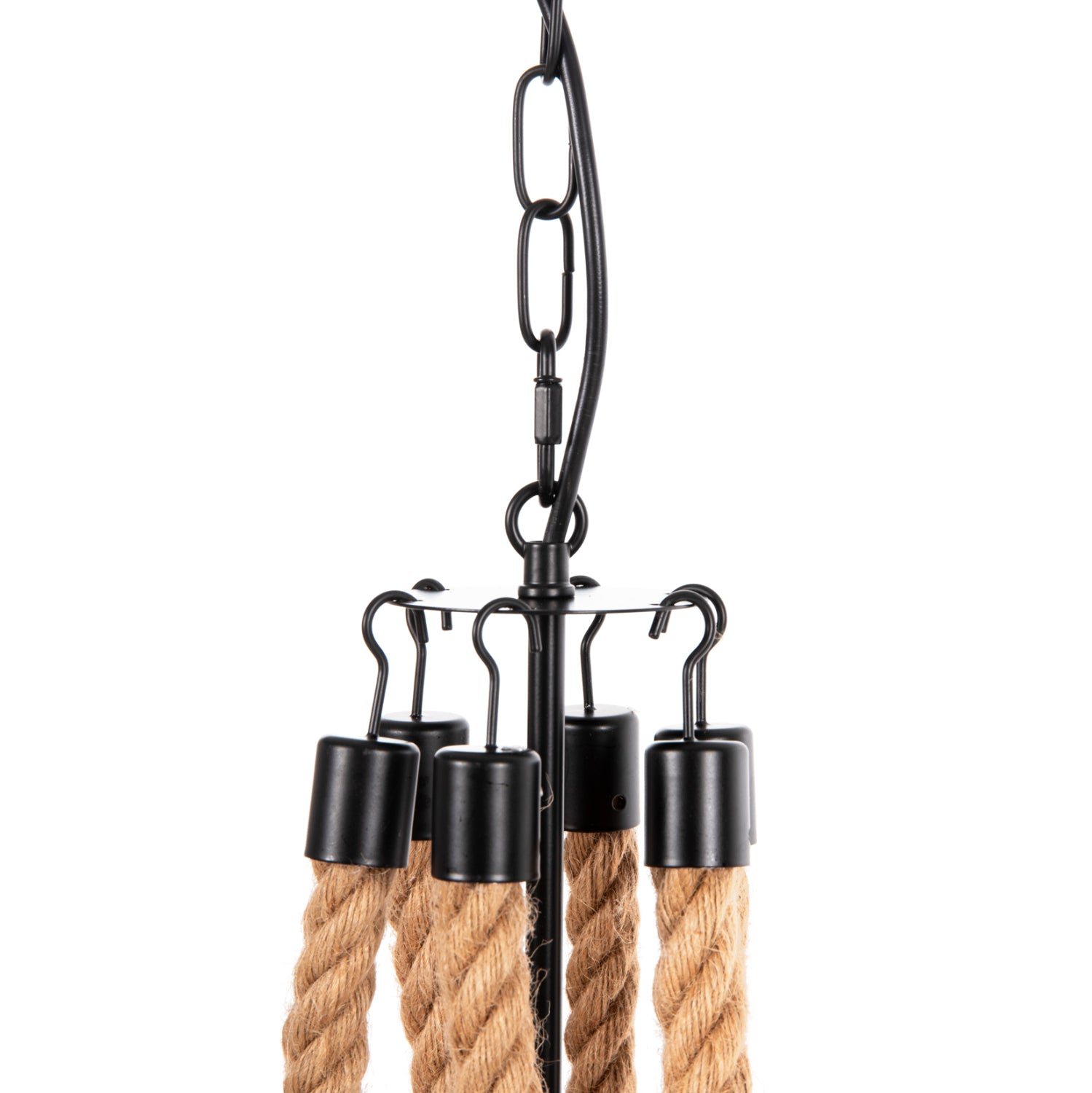 Το πολύφωτο ΗΜ4177 είναι μια ακόμα εντυπωσιακή προσθήκη στην γκάμα μας. Ο μαύρος μεταλλικός σκελετός του είναι κυκλικός και κρέμεται με αλυσίδα από την οροφή. Στον κυκλικό σκελετό είναι μονταρισμένα τα 6 φώτα σε μορφή κηροπηγίων, ενώ την εικόνα συμπληρώνουν τα σχοινιά που δίνουν την αίσθηση πολυελαίου στο φωτιστικό. Αυτό το πολύφωτο θα φωτίσει με άπλετο φως μεγάλους χώρους και θα εντυπωσιάσει με το όμορφο design του.