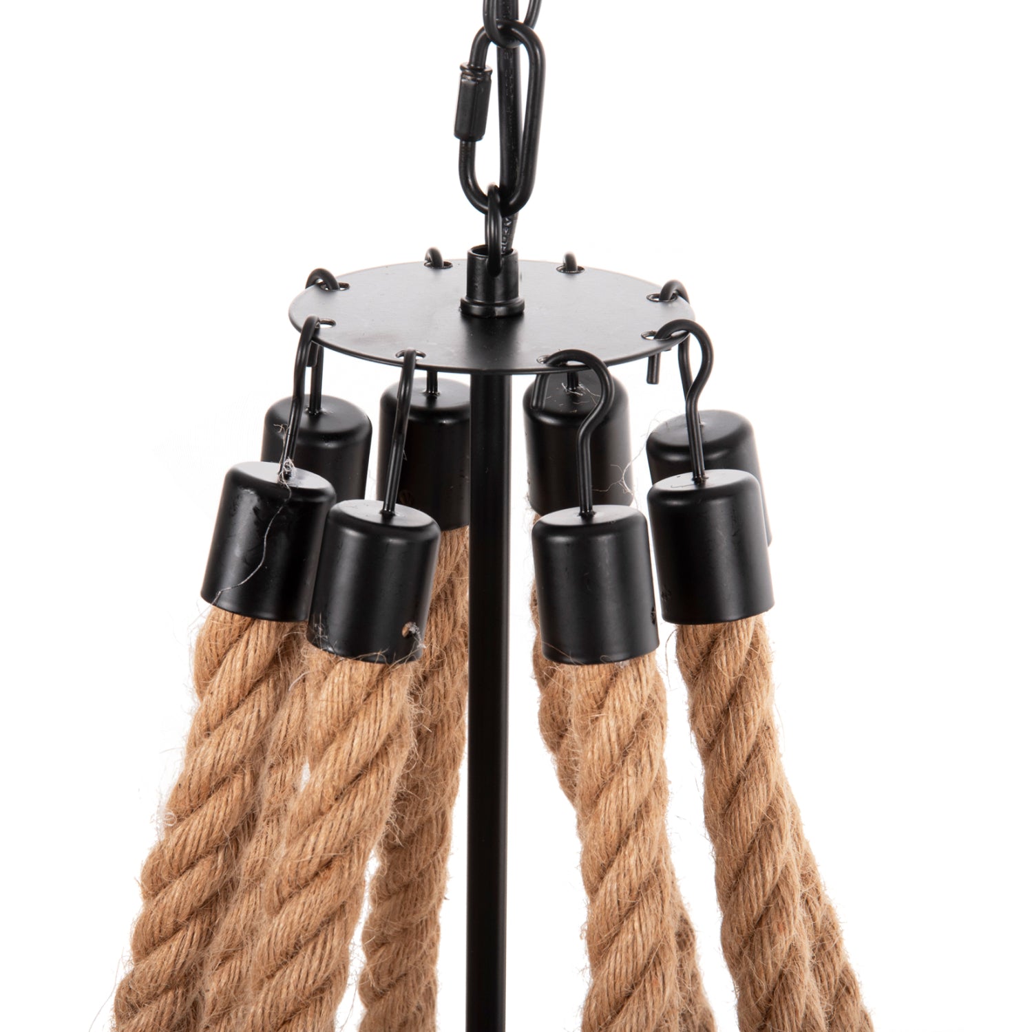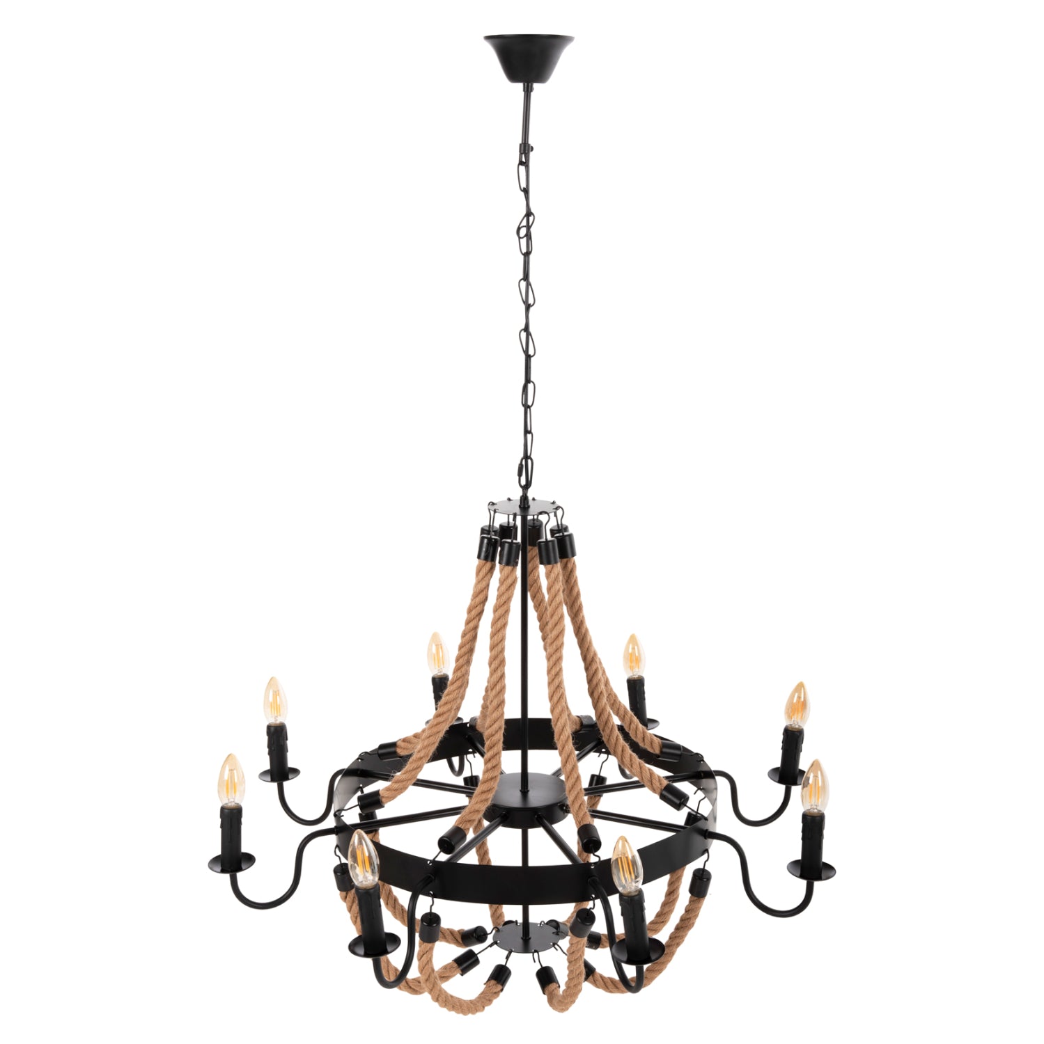 Το πολύφωτο ΗΜ4178 είναι μια ακόμα εντυπωσιακή προσθήκη στην γκάμα μας. Ο μαύρος μεταλλικός σκελετός του είναι κυκλικός και κρέμεται με αλυσίδα από την οροφή. Στον κυκλικό σκελετό είναι μονταρισμένα τα 8 φώτα σε μορφή κηροπηγίων, ενώ την εικόνα συμπληρώνουν τα σχοινιά που δίνουν την αίσθηση πολυελαίου στο φωτιστικό. Αυτό το πολύφωτο θα φωτίσει με άπλετο φως μεγάλους χώρους και θα εντυπωσιάσει με το όμορφο design του.