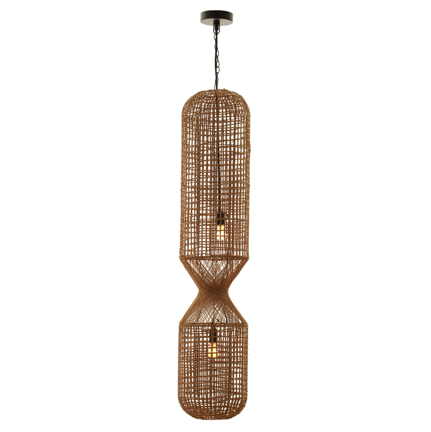 Ανακαλύψτε αυτή την νέα προσθήκη στην γκάμα των φωτιστικών μας. Πρόκειται για ένα επιβλητικό κρεμαστό φωτιστικό οροφής σε σχήμα κυλίνδρου που δέχεται 2 λάμπες σε κατακόρυφη διάταξη. Ο σκελετός είναι μεταλλικός αλλά αυτό που κυριαρχεί είναι η επένδυση με paper rope εξαιρετικής ποιότητας σε χρώμα ΜΠΕΖ της άμμου. Ένα όμορφο φωτιστικό που διαχέει το φως προς κάθε κατεύθυνση και δημιουργεί την ατμόσφαιρα που πάντα φανταζόσασταν για τον χώρο σας.