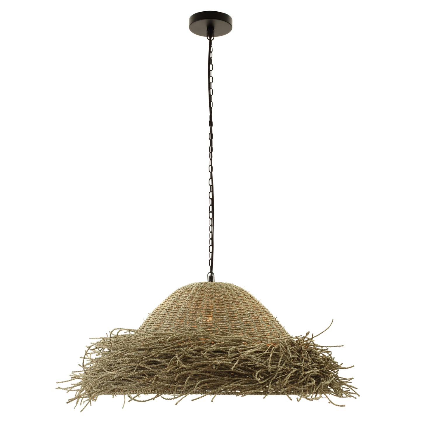 Αν επιθυμείτε να διακοσμήσετε το χώρο σας με ένα φωτιστικό σε boho στυλ, αυτό το φωτιστικό που είναι μια από τις νέες προσθήκες στην γκάμα μας είναι μια ασφαλής επιλογή. Πρόκειται για ένα μονόφωτο φωτιστικό με «καπέλο» σε σχήμα καμπάνας φτιαγμένο από αποξηραμένα seagrass, σε φυσικό χρώμα και κρόσια στο τελείωμα.