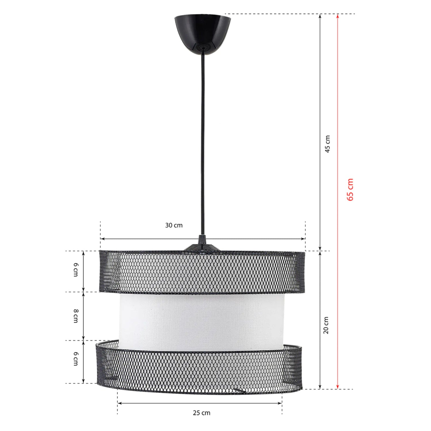 ΦΩΤΙΣΤΙΚΟ ΟΡΟΦΗΣ ΚΡΕΜΑΣΤΟ HM7658.01, ΜΑΥΡΟ ΜΕΤΑΛΛΟ, ΥΦΑΣΜΑ ΛΕΥΚΟ, Φ30x65 εκ.