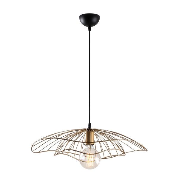 Μοντέρνο κρεμαστό φωτιστικό οροφής, μονόφωτο μεταλλικό σε μαύρη με χρυσή οξυντέ απόχρωση.