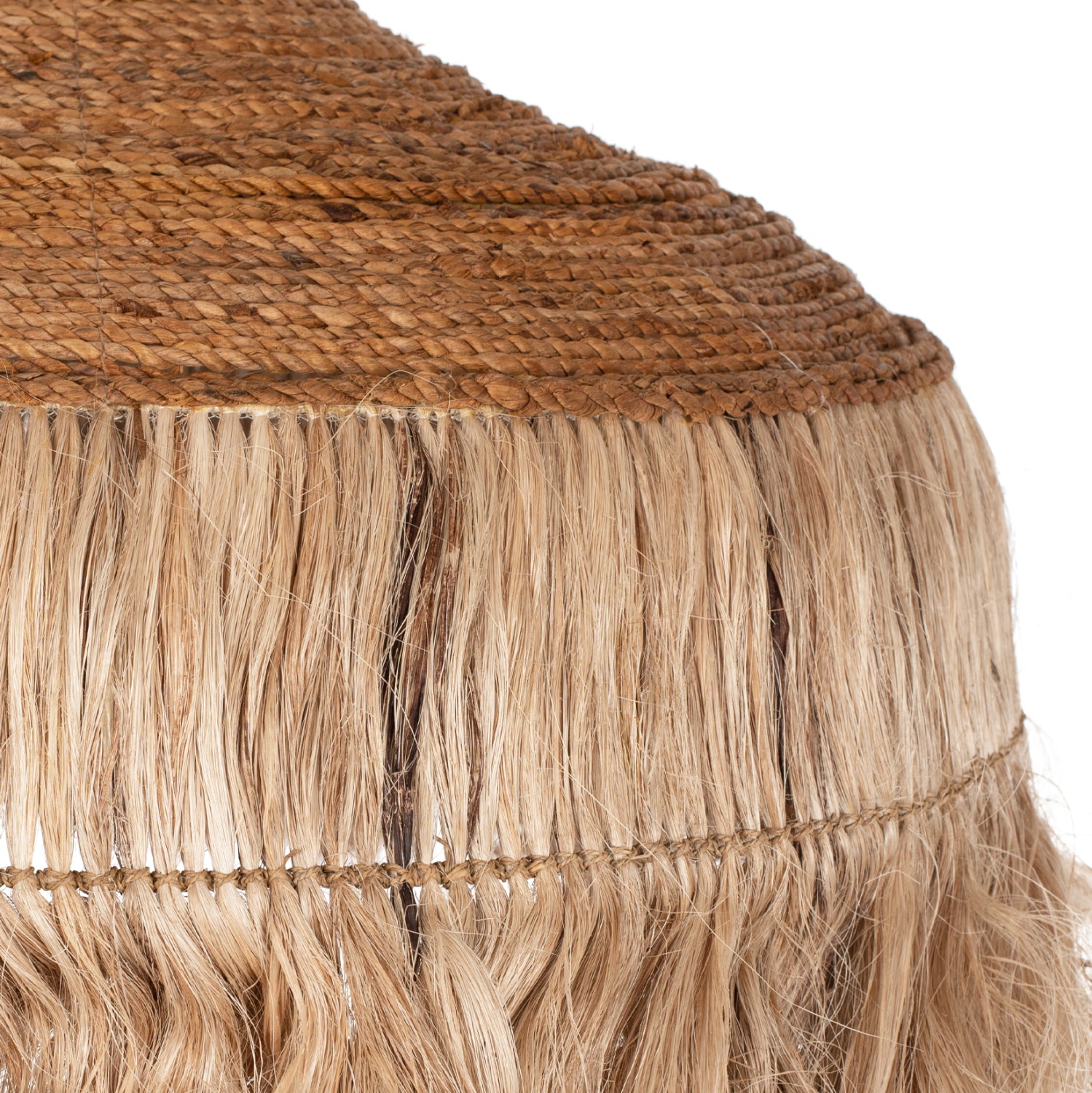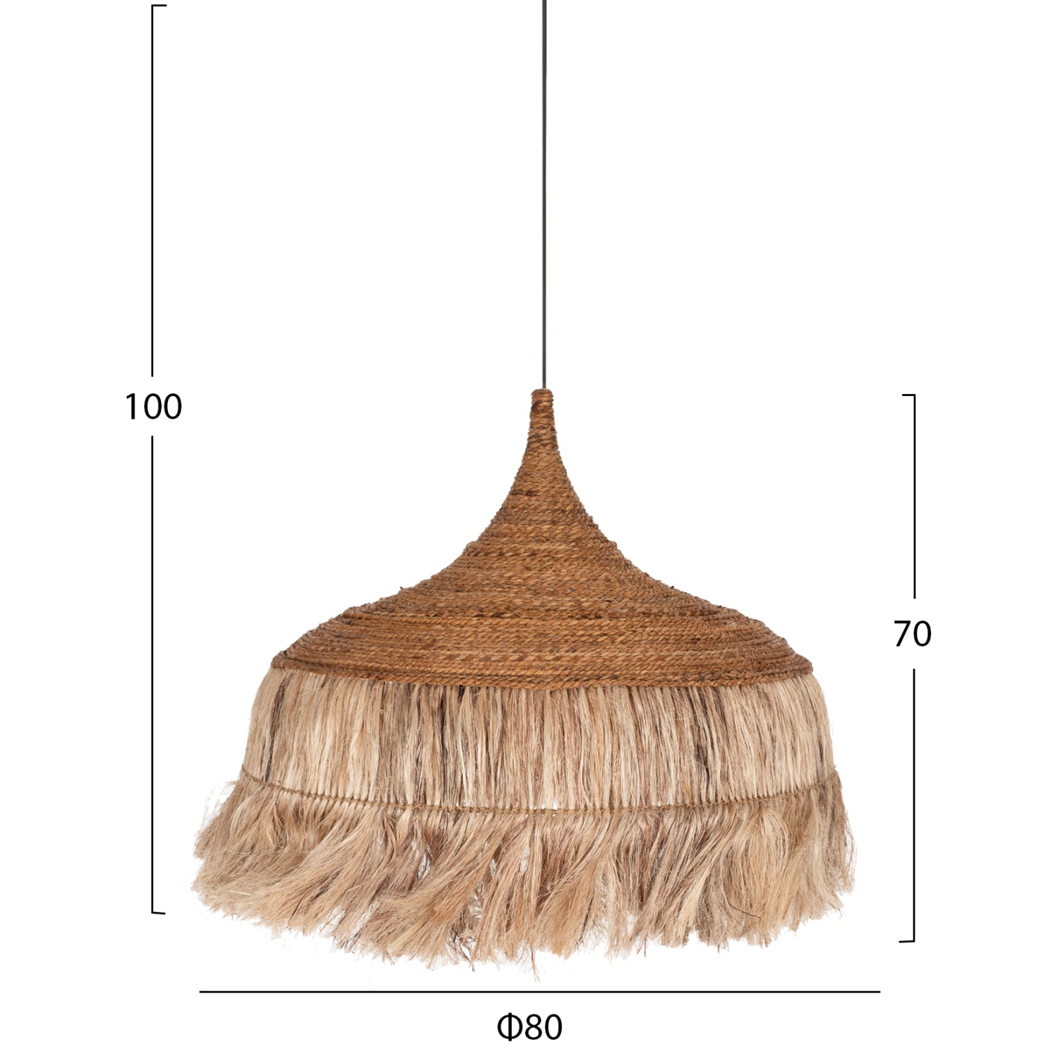 Hm7755- Kρεμαστό φωτιστικό---- Αν επιθυμείτε να διακοσμήσετε το χώρο σας με ένα φωτιστικό σε boho στυλ, αυτό είναι η πιο σωστή επιλογή. Είναι ένα μονόφωτο φωτιστικό για επαγγελματική χρήση, με «καπέλο» σε σχήμα καμπάνας φτιαγμένο από σκοινί, υψηλής ποιότητας και αντοχής στο χρόνο. Το ιδιαίτερο χαρακτηριστικό, όμως, αυτού του φωτιστικού είναι ότι το «καπέλο» στο μεγαλύτερο μέρος του αποτελείται από κρόσια, επιτείνοντας ακόμα περισσότερο το boho στυλ.