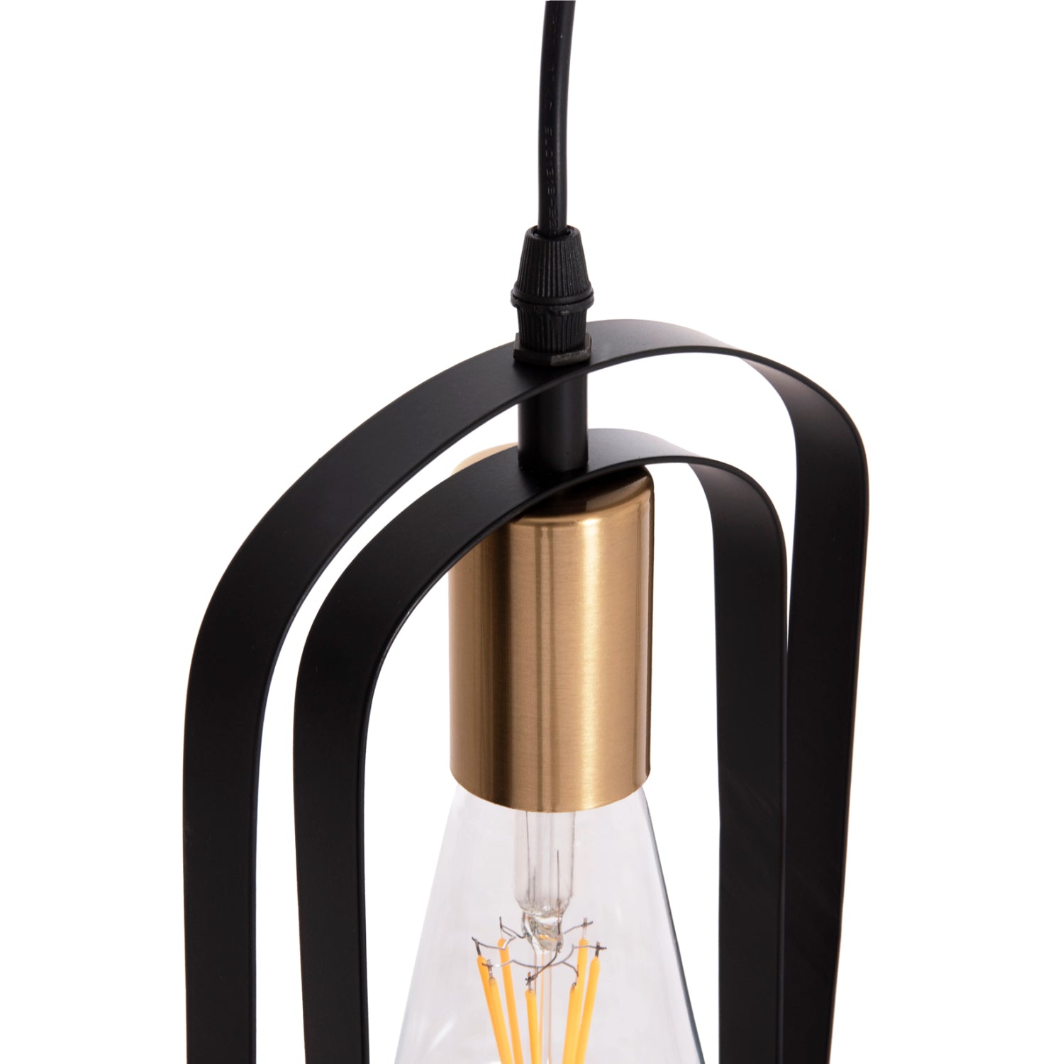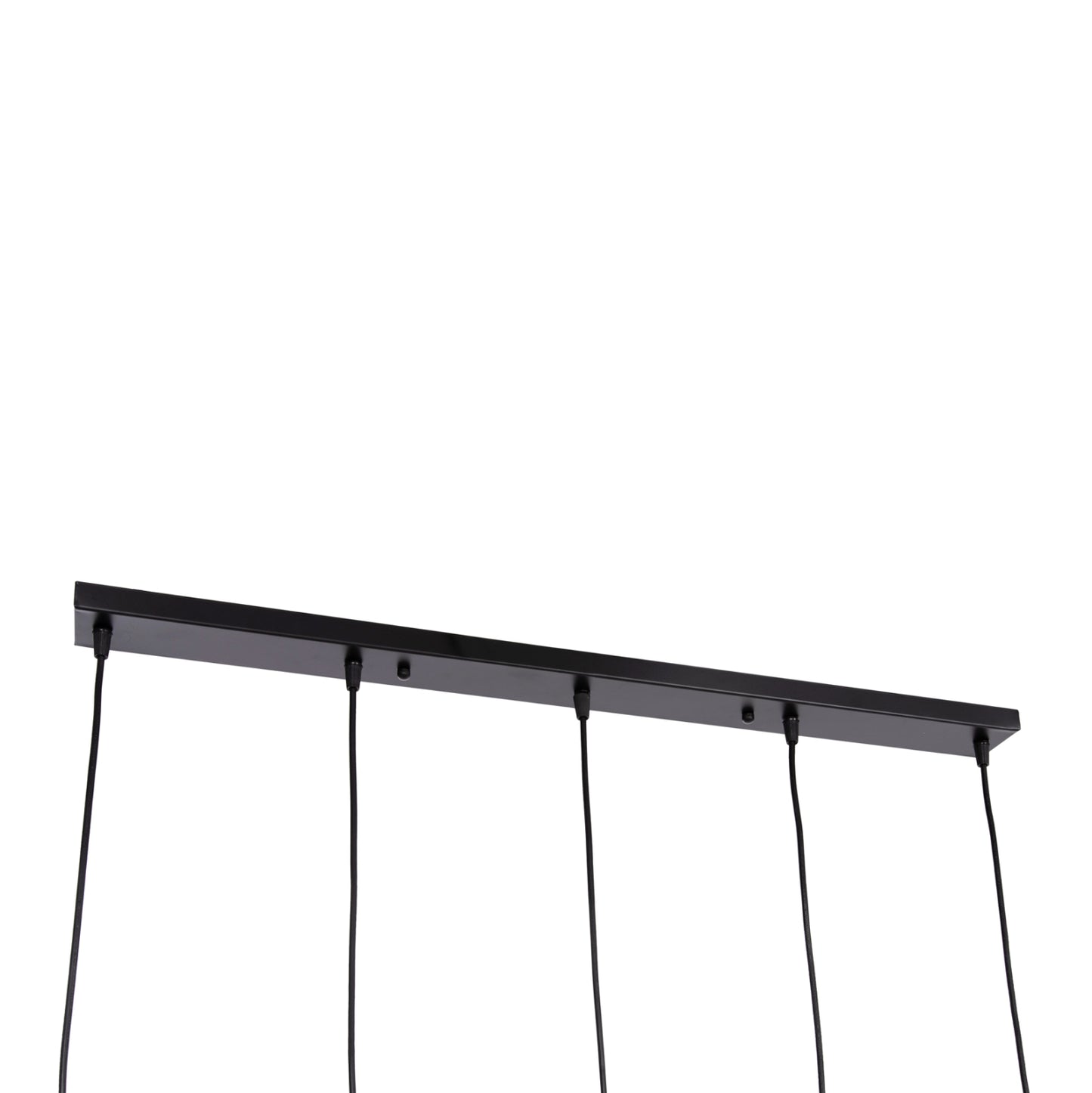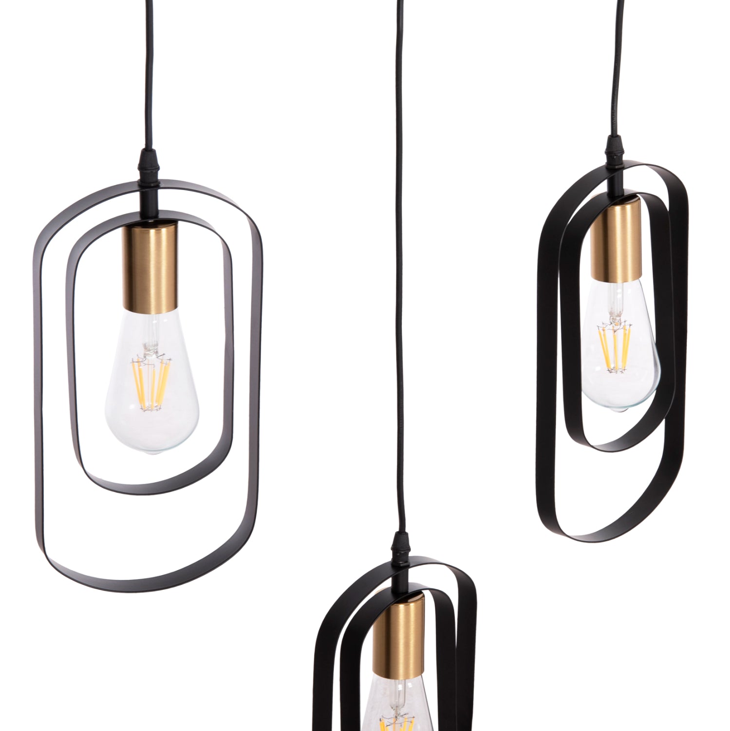 Αυτό το κρεμαστό φωτιστικό οροφής BIUT είναι ένα 5-φωτο κρεμαστό σε διαφορετικά εναλλασσόμενα ύψη με μαύρη ορθογώνια βάση οροφής και μαύρα καλώδια κρέμασης. Οι λάμπες τοποθετούνται σε ντουί χρυσού χρώματος ενώ αυτό που τραβάει τα βλέμματα είναι το minimal design των καπέλων με τα δύο μεταλλικά πλαίσια.