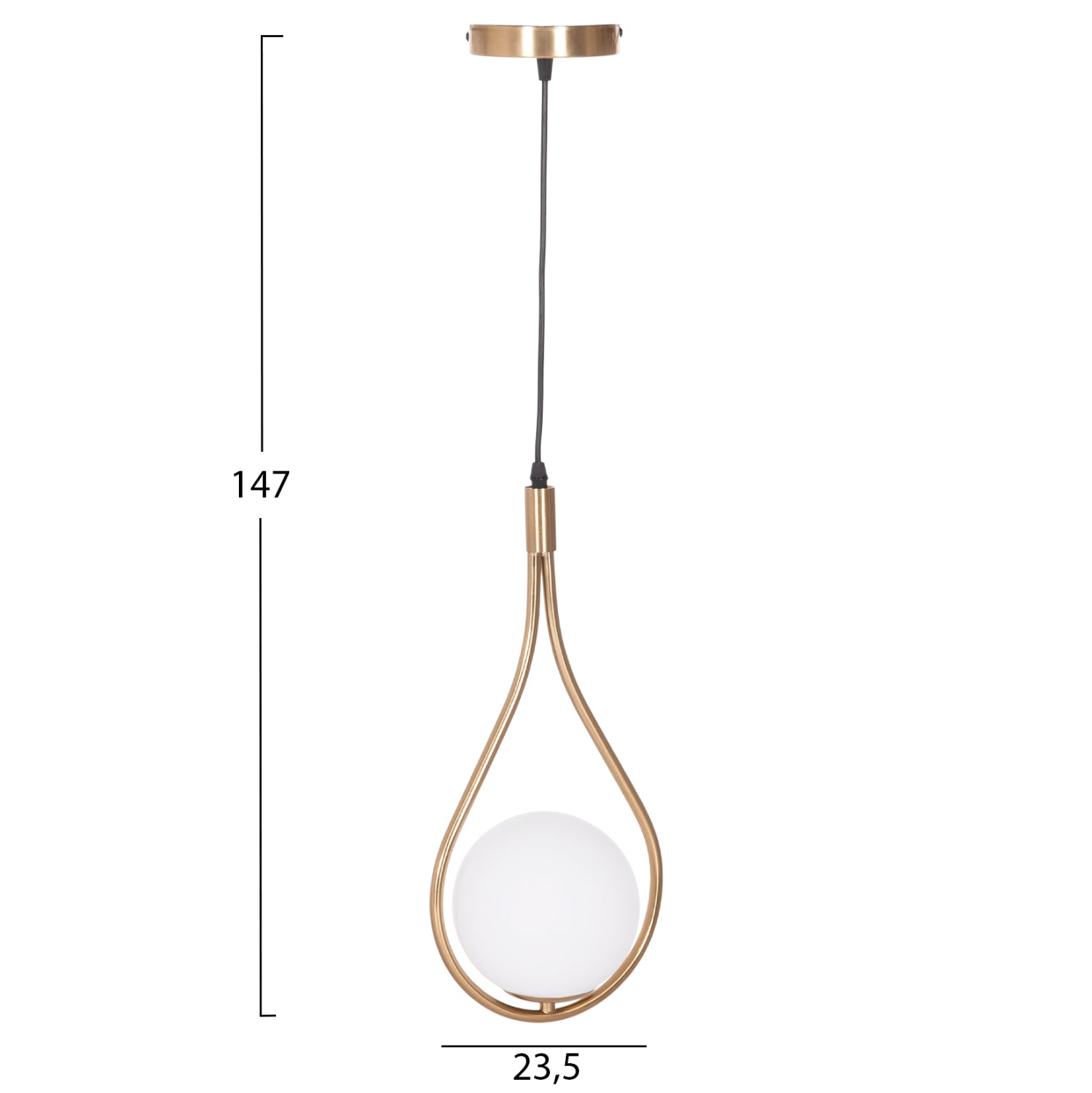 Αυτό το μεταλλικό κρεμαστό φωτιστικό οροφής DROPLET είναι όμορφο σε σχήμα ΧΡΥΣΗΣ σταγόνας. Η στρογγυλή βάση οροφής είναι σε χρώμα χρυσό, ενώ το καλώδιο κρέμασης είναι ΜΑΥΡΟ. Η λάμπα τοποθετείται σε ΛΕΥΚΟ γλόμπο δημιουργώντας πολύ όμορφες χρωματικές αντιθέσεις.