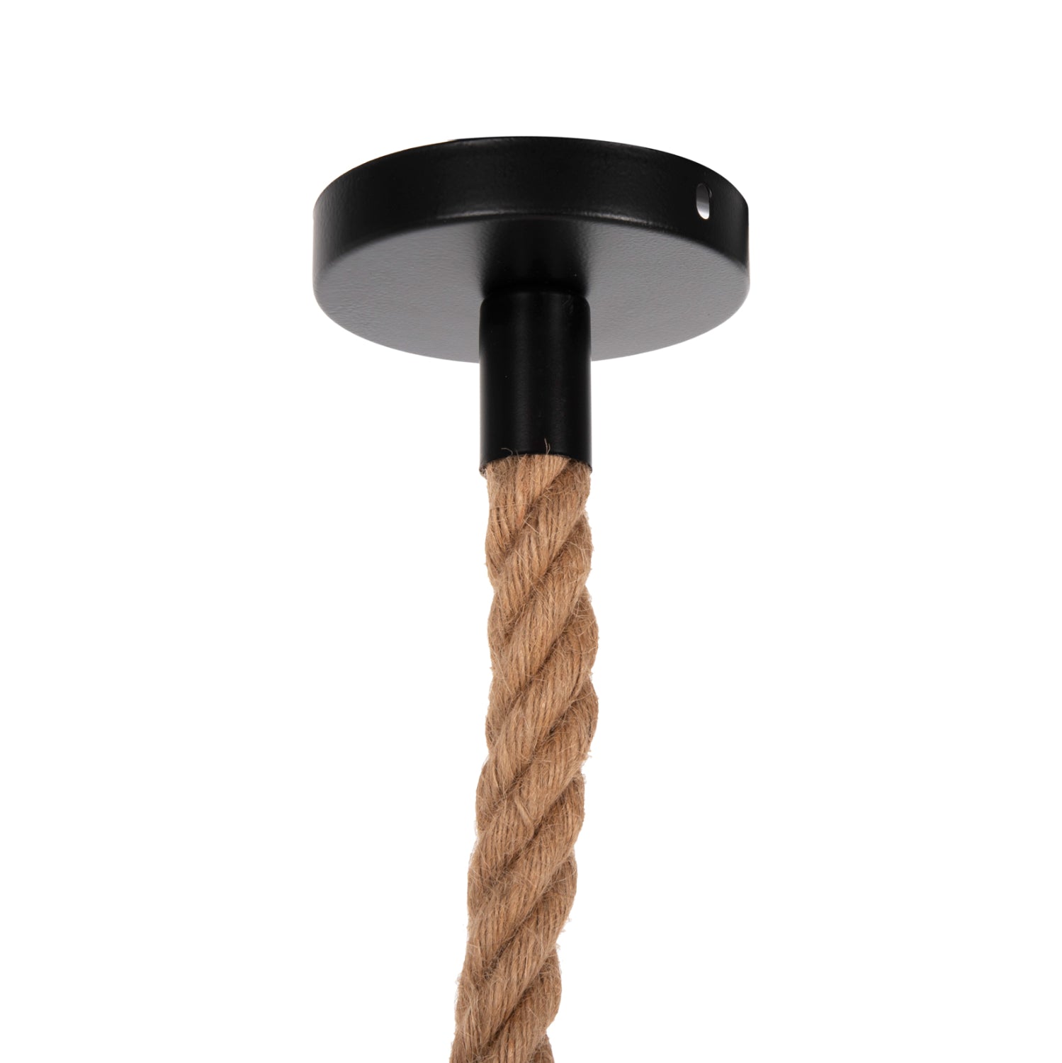 Το φωτιστικό είναι φτιαγμένο από σχοινί ενώ το καπάκι οροφής είναι μεταλλικό.