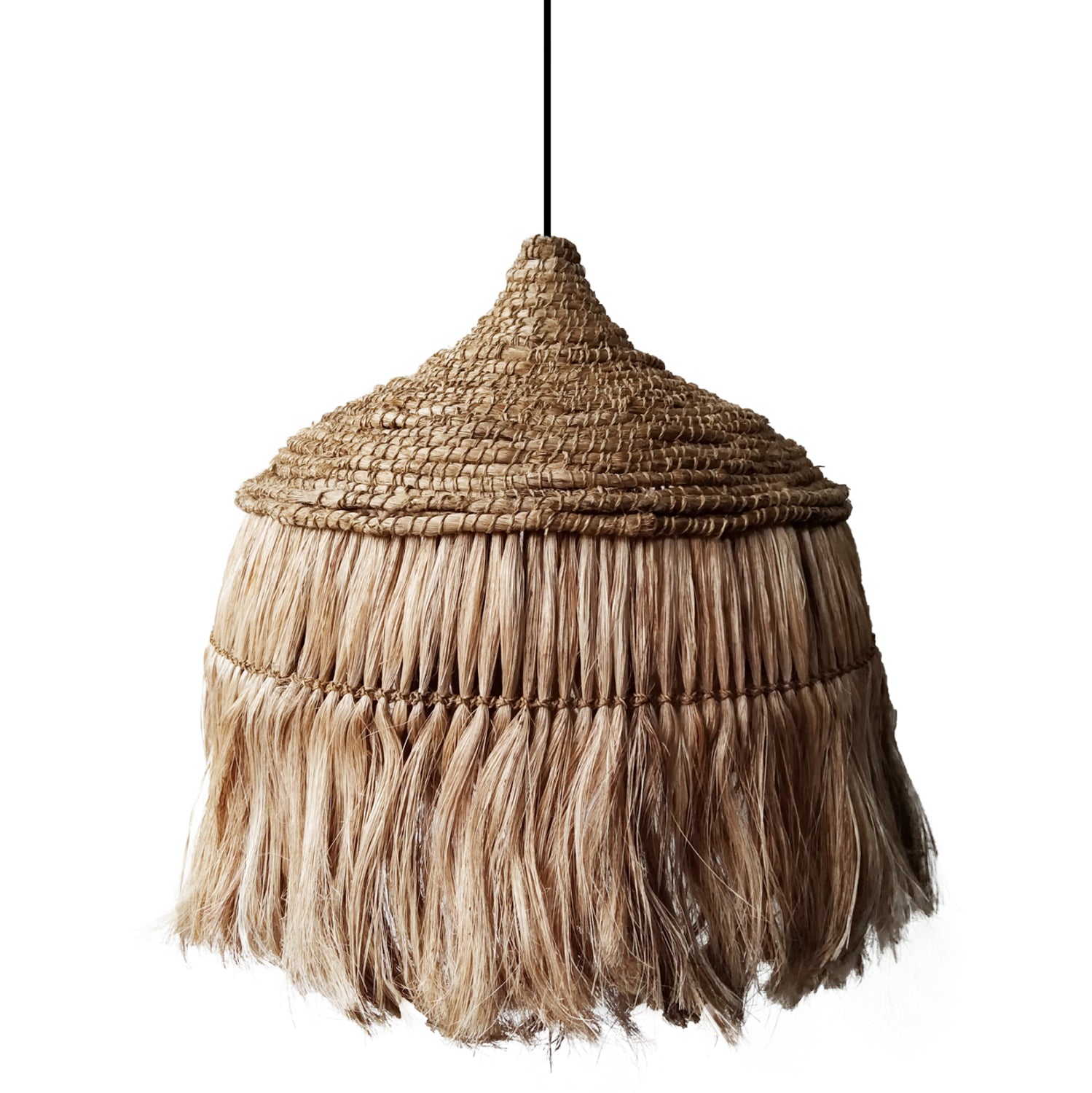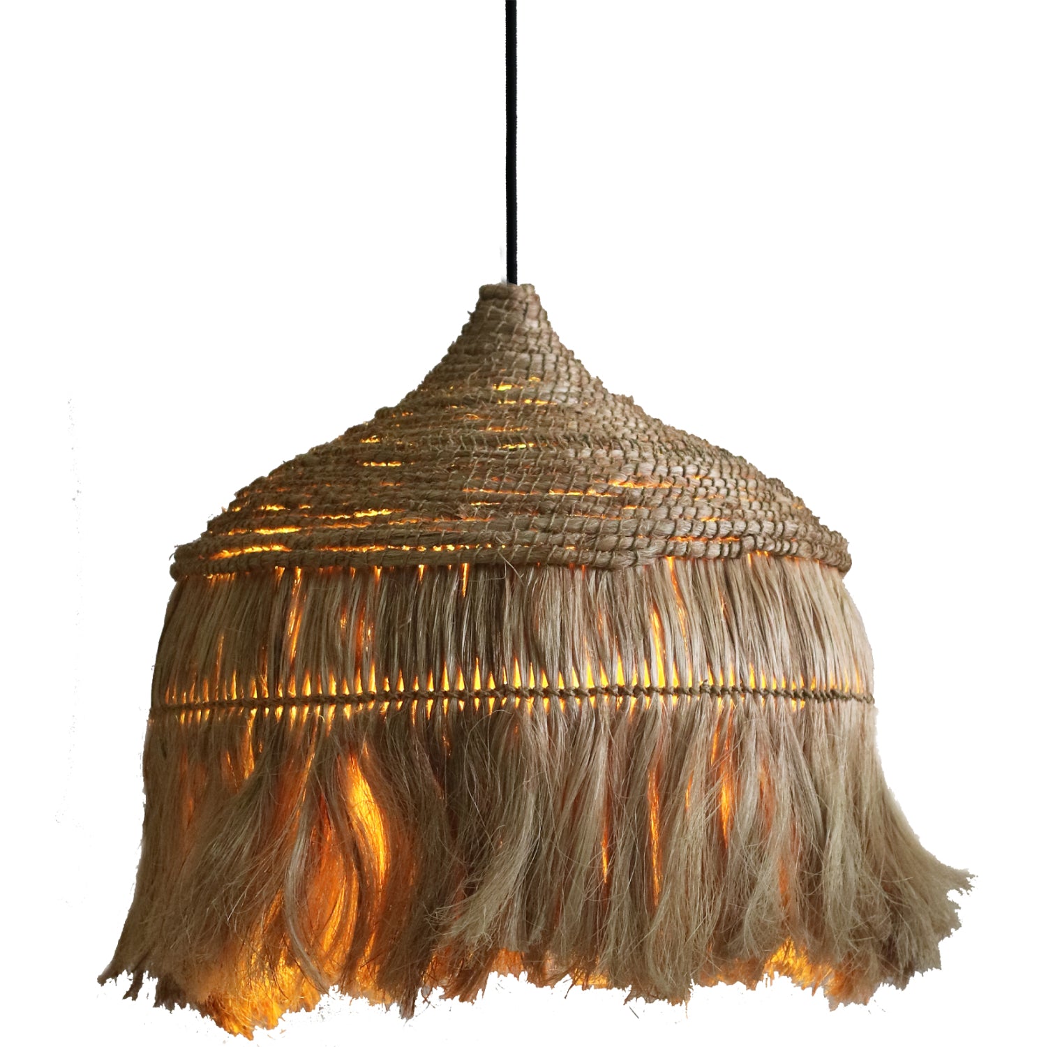 Hm7777- Kρεμαστό φωτιστικό---- Αν επιθυμείτε να διακοσμήσετε το χώρο σας με ένα φωτιστικό σε boho στυλ, αυτό είναι μια χαρακτηριστική επιλογή. Είναι ένα μονόφωτο με «καπέλο» σε σχήμα καμπάνας φτιαγμένο από ανακυκλωμένες ίνες κάνναβης Μανίλας και ιδιαιτέρως μακριά κρόσια από τις ίδιες ίνες.