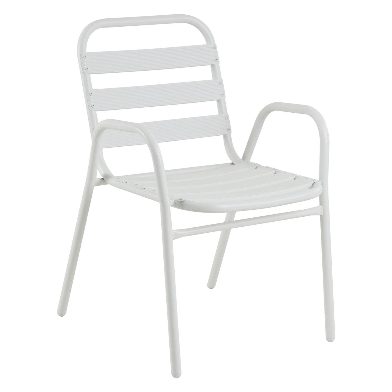 Η καρέκλα εξωτερικού χώρου PRELUDE είναι κατασκευασμένη από μέταλλο και αλουμίνιο σε ΛΕΥΚΟ χρώμα. Ο σκελετός της είναι μεταλλικός, ενώ η πλάτη και το κάθισμα αποτελούνται από «φέτες» αλουμινίου. Σχεδιαστικά, είναι λιτή με όμορφες καμπύλες και χαμηλά μπράτσα, ενώ το γεγονός ότι είναι ελαφριά και ΣΤΟΙΒΑΖΟΜΕΝΗ την κάνει ιδιαιτέρως πρακτική αφού μπορείτε να την αποθηκεύσετε εύκολα στον μικρότερο δυνατό χώρο.