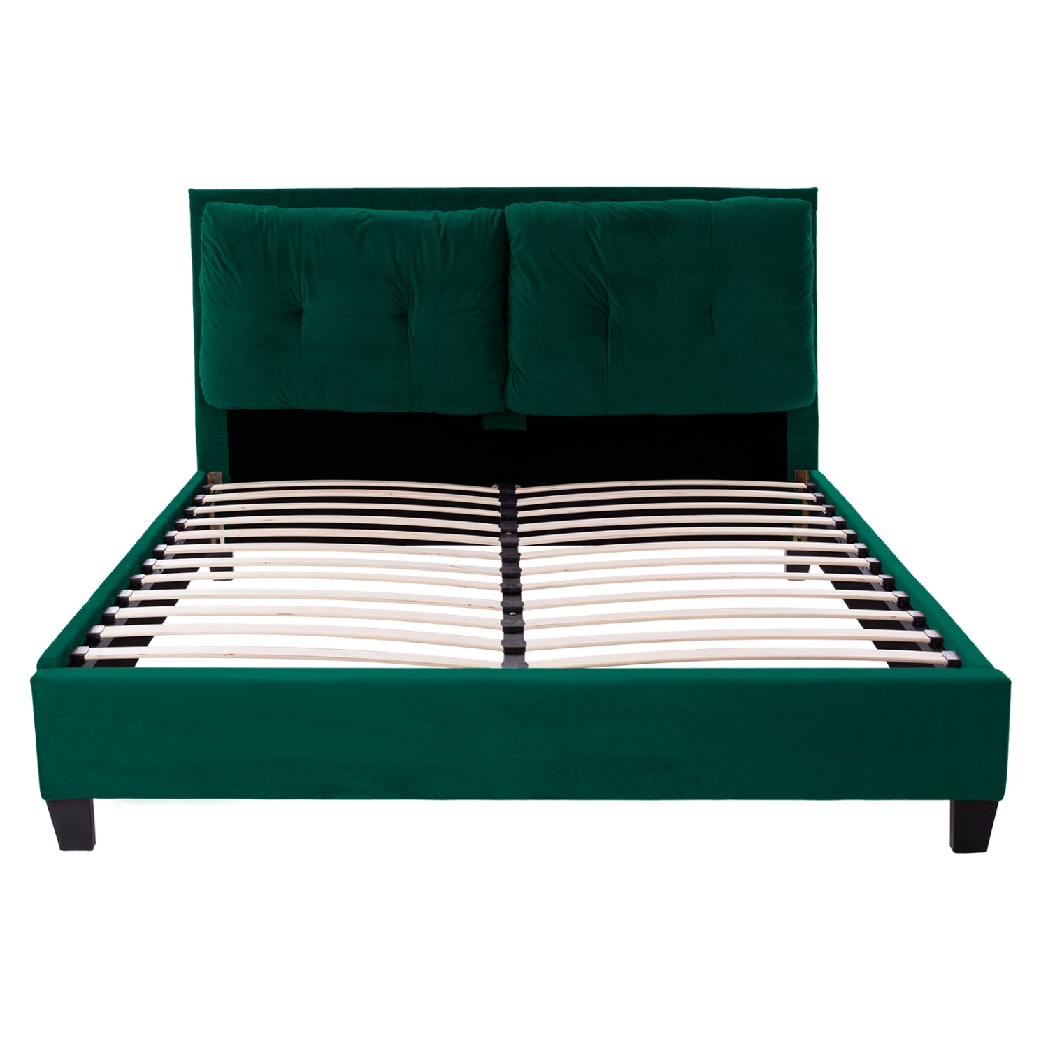 Εμείς λοιπόν, σας προσφέρουμε το κρεβάτι BILLIE για να απολαμβάνετε κάθε στιγμή τον ύπνο σας. Σε διάσταση για στρώμα 160x200 εκ, είναι επαρκέστατα άνετο για να χωρέσουν δύο άτομα. Έχει κεφαλάρι με δύο καπιτονέ μαξιλάρια δεμένα πάνω του (μη αποσπώμενα) για να προσφέρει άνεση όταν κάθεστε για να διαβάσετε το βιβλίο σας, ενώ ολόκληρη η επένδυσή του έχει γίνει με εξαιρετικής ποιότητας βελούδινο ύφασμα σε χρώμα κυπαρισσί. Το στρώμα «κάθεται» πάνω σε δύο σειρές από ανατομικές τάβλες, ακολουθώντας τον παραδοσιακό τρόπο κατασκευής κρεβατιού.