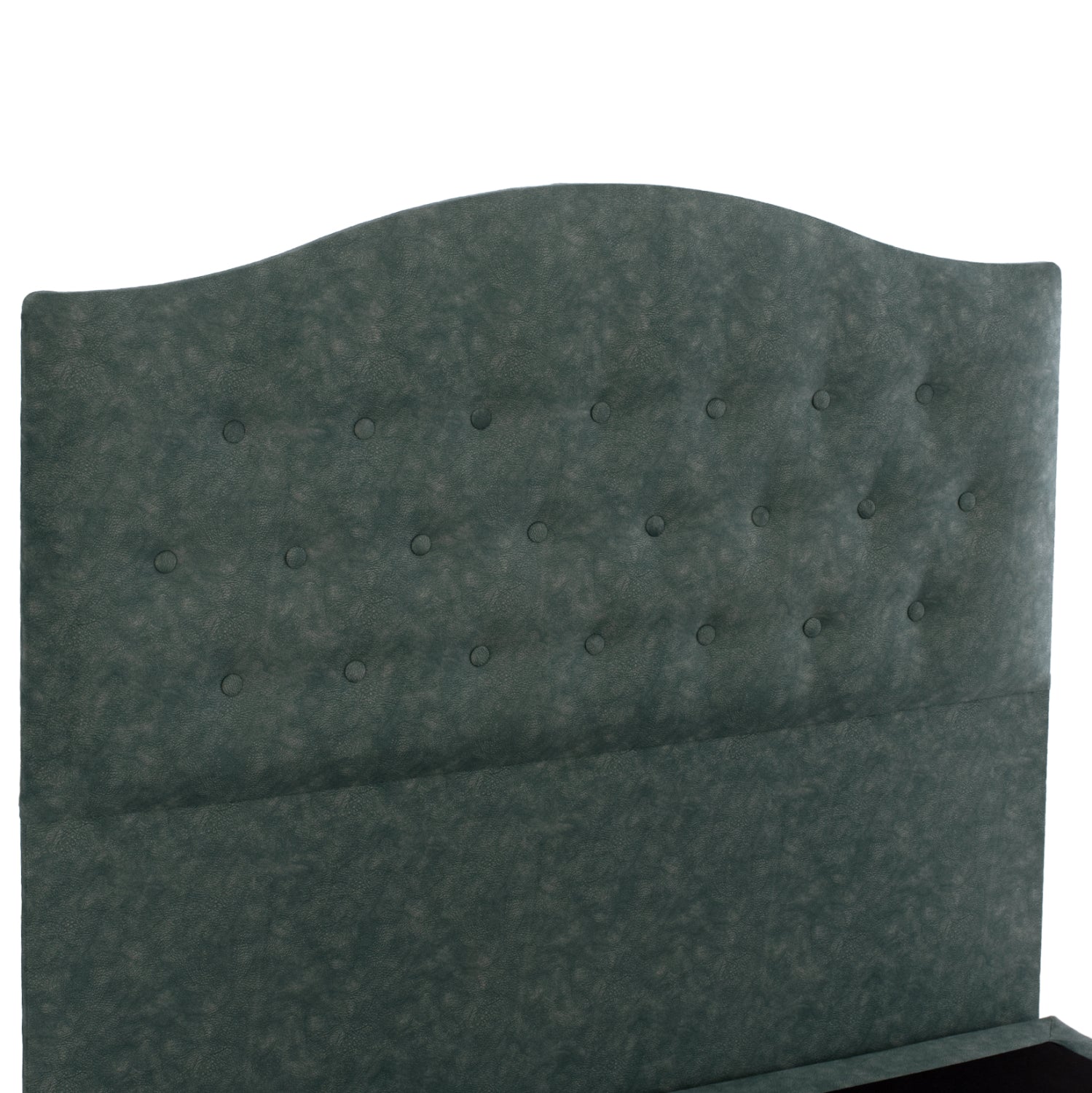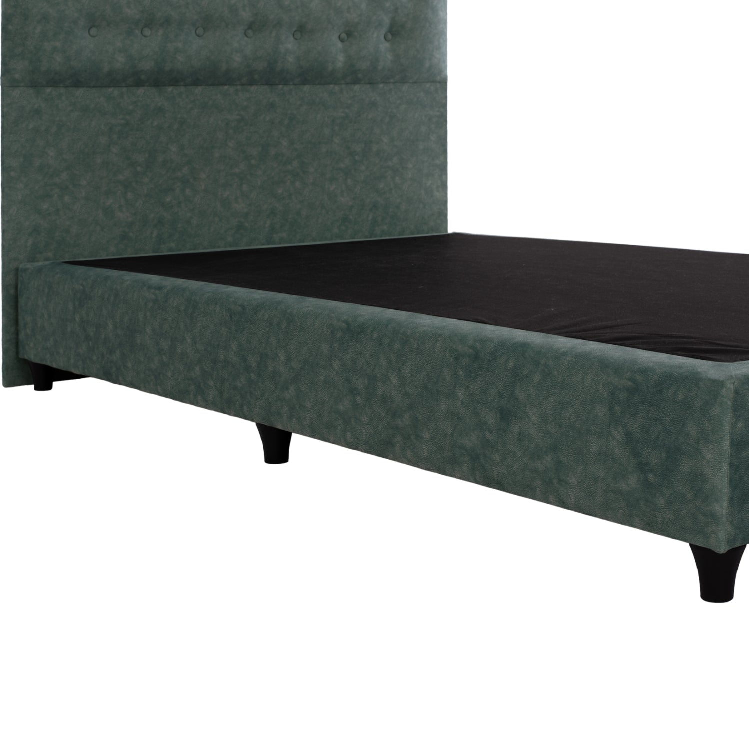 Το κεφαλάρι είναι ψηλό και επενδυμένο με καπιτονέ τεχνοτροπία με τρούκς, ενώ και όλη η επένδυση του κρεβατιού είναι από ανάγλυφο ύφασμα. Το ΠΡΑΣΙΝΟ χρώμα σε όλο το κρεβάτι είναι όμορφο και μπορεί να συνδυαστεί με πληθώρα διακοσμητικών μοτίβων.