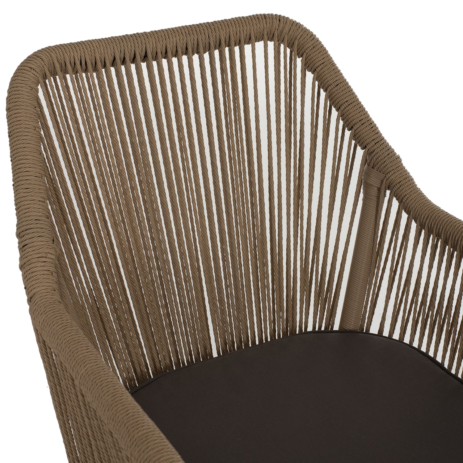 Η πολυθρόνα είναι επενδυμένη με πολυεστερική πλέξη wicker. Το Wicker δεν είναι υλικό, είναι μέθοδος κατασκευής επίπλων κυρίως για εξωτερικούς χώρους. Πρόκειται για μια αρχαία τεχνική, κατά την οποία οι τεχνίτες περνούν το φυσικό ή συνθετικό υλικό από ατμό και στη συνέχεια το λυγίζουν στο σχήμα που θέλουν, ή το πλέκουν. Στην ΗΜ5855.02 η πλέξη wicker έχει γίνει με πολυεστερικές ίνες υψηλής ποιότητας και αντοχής ανθεκτικές σε ακραίες καιρικές συνθήκες ζέστης ή κρύου.