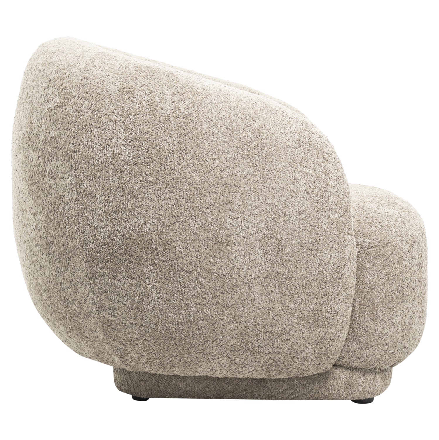 Η επένδυση της πολυθρόνας έχει γίνει εξολοκλήρου με εξαιρετικής ποιότητας ύφασμα ΜΠΟΥΚΛΕ. Μπουκλέ λέγεται οποιοδήποτε ύφασμα που έχει κόμπο-μπούκλα στην ύφανσή του . Κατασκευάζεται από σχεδόν όλες τις πρώτες ύλες (αν και συνήθως είναι συνθετικό) με ειδικές κλωστές με κόμπους ή πολύ στριμμένα νήματα, έτσι ώστε να έχει σγουρή επιφάνεια. Δεν τσαλακώνει και μπορεί να είναι μονόχρωμο, μελανζέ ,καρώ ή τουιντ.