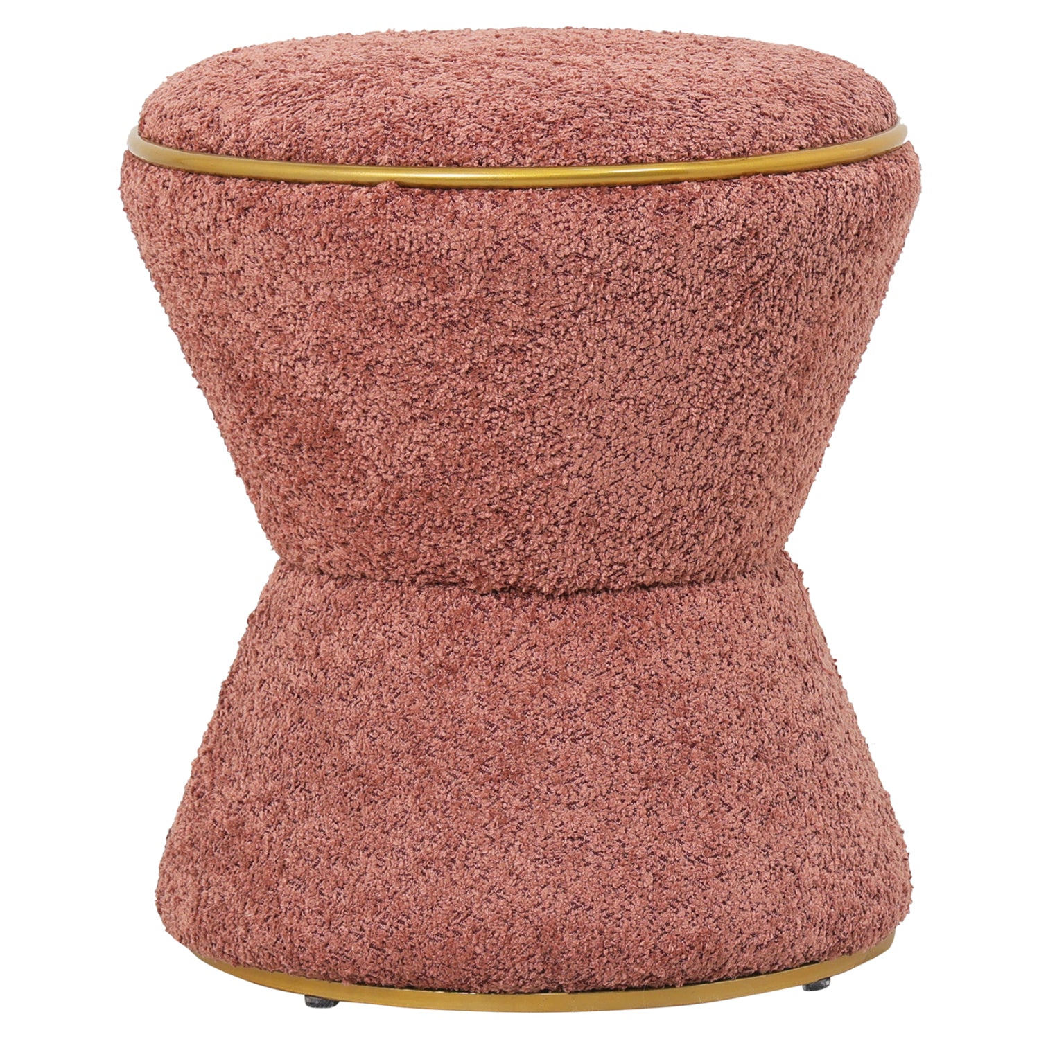 Σκαμπό κυλινδρικό LINNER επενδυμένο με ΡΟΖ μπουκλέ ζεστό ύφασμα και ΧΡΥΣΗ μεταλλική λεπτομέρεια («δαχτυλίδι») στο κάθισμα και στην βάση.