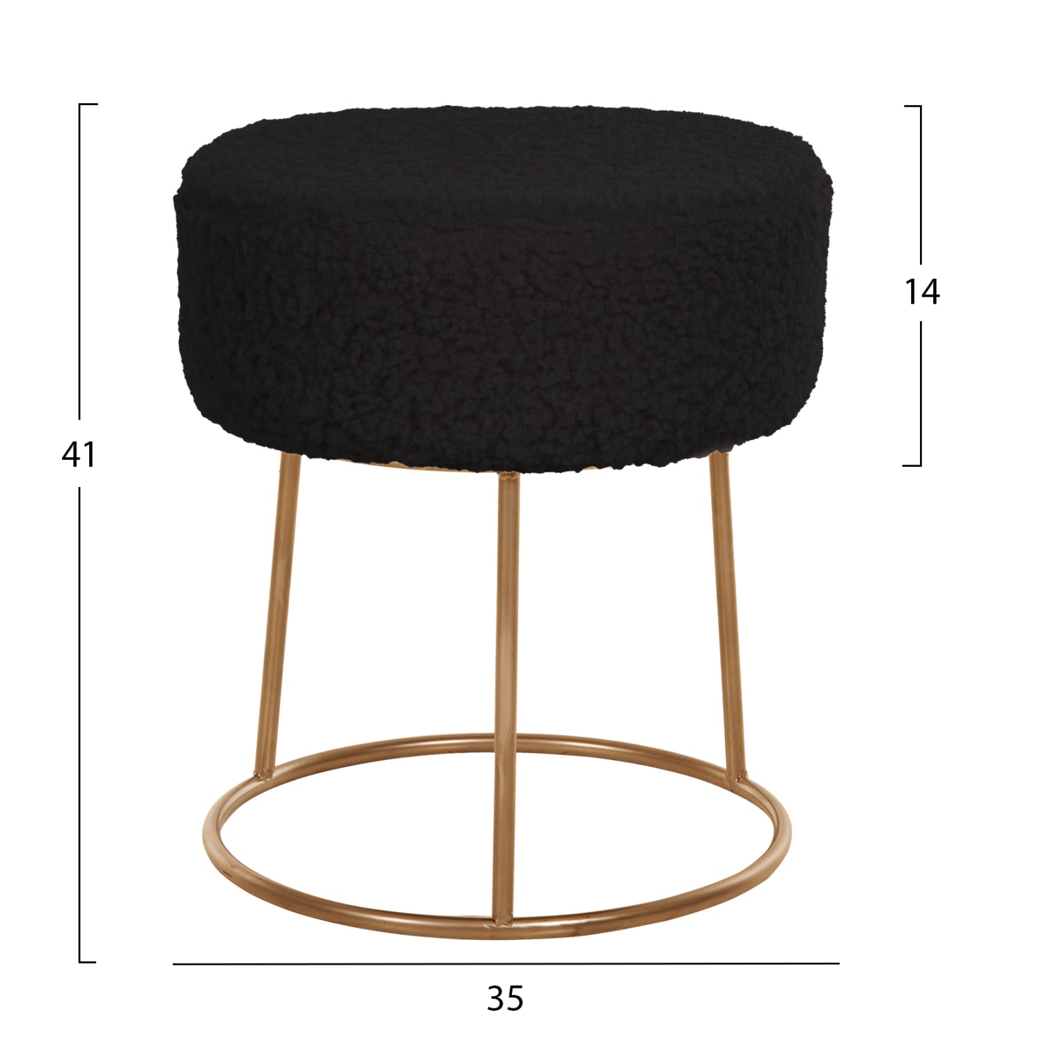 Το σκαμπό KARLO είναι μια μοντέρνα και στιλάτη πρόταση που θα αφήσει το στίγμα του σε όποιο σαλόνι κι αν τοποθετηθεί. Το στρογγυλό του σχήμα με την στρογγυλή ΧΡΥΣΗ μεταλλική βάση, σε συνδυασμό με το ζεστό μπουκλέ ύφασμα σε ΜΑΥΡΟ χρώμα, συνθέτουν ένα όμορφο και πρακτικό έπιπλο, που μπορεί να συνδυαστεί με πληθώρα άλλων χρωμάτων στην διακόσμηση του σαλονιού.