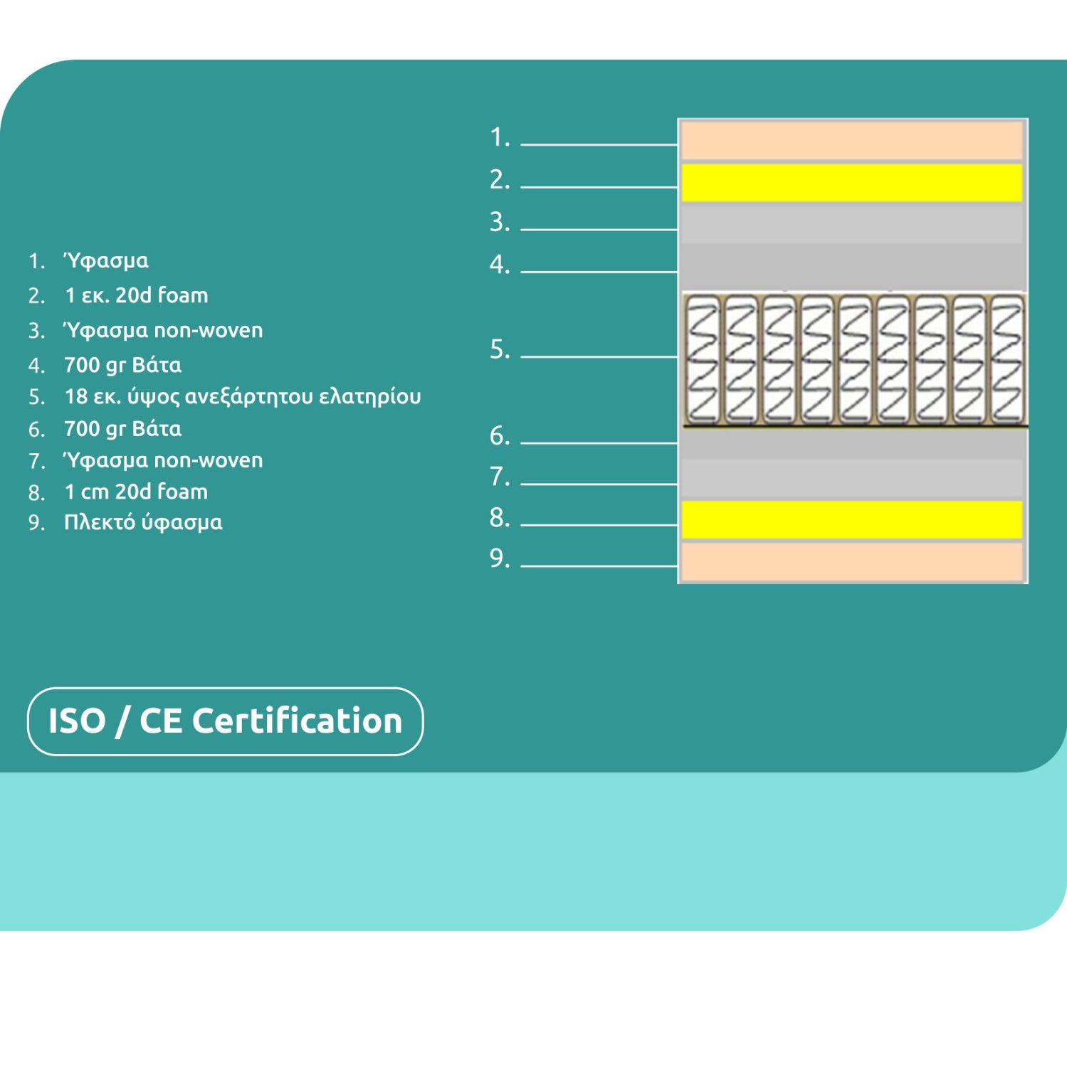 Τα ίδια υλικά υπάρχουν και από την άλλη πλευρά του στρώματος μιας και το στρώμα είναι διπλής όψης.