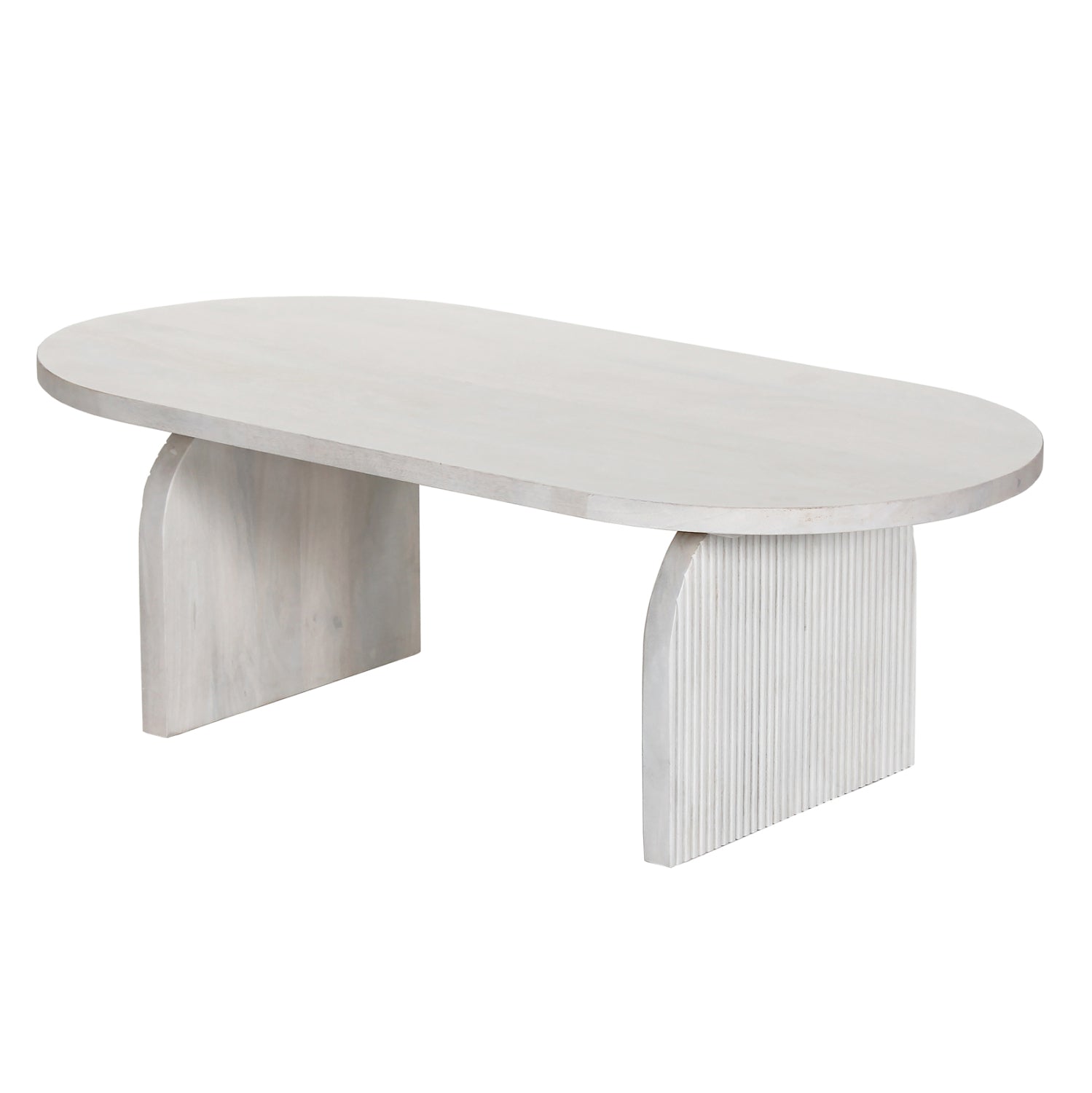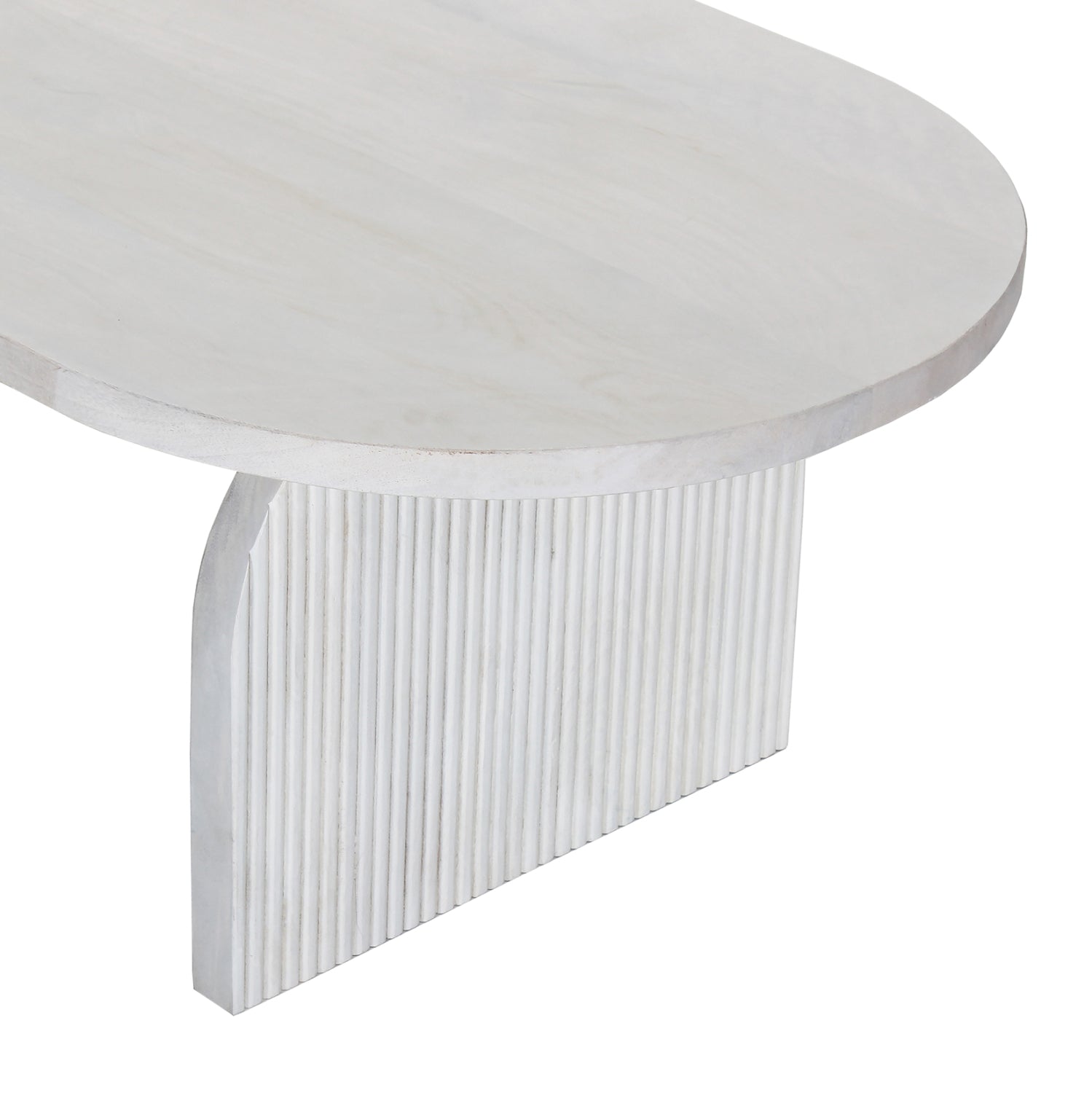 Ανακαλύψτε το τραπέζι σαλονιού HONKY που είναι εξολοκλήρου κατασκευασμένο από μασίφ ξύλο mango σε ΛΕΥΚΟ χρώμα. To σχήμα είναι τυπικό οβάλ και στηρίζεται σε 2 μασίφ αψίδες από το ίδιο ξύλο και του ίδιου χρώματος.