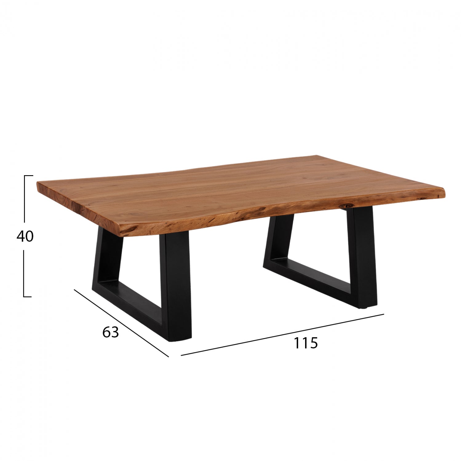ΗΜ8166.11 ΤΡΑΠΕΖΙ ΑΚΑΚΙΑΣ-----Ανακαλύψτε το μοναδικό χειροποίητο τραπέζι HM8166.11 με επιφάνεια από φυσικό μασίφ ξύλο ΑΚΑΚΙΑΣ σε ΦΥΣΙΚΟ χρώμα. To σχήμα είναι ορθογώνιο και στηρίζεται σε δύο μαύρες μεταλλικές βάσεις με τραπεζοειδές σχήμα. Το μοντέρνο design συναντά την φύση και δίνει μια διαχρονική και ζεστή αίσθηση στον χώρο σας.