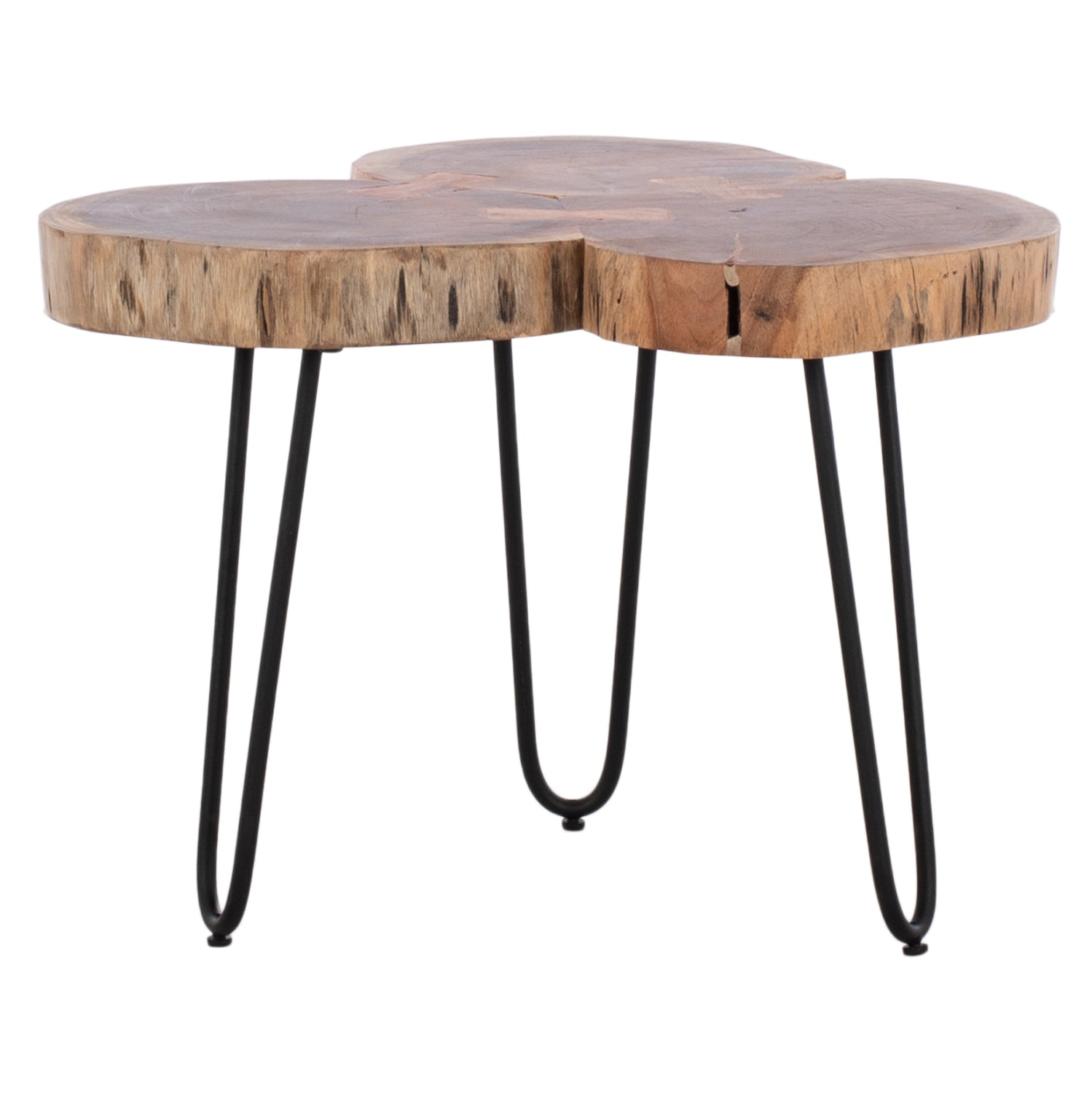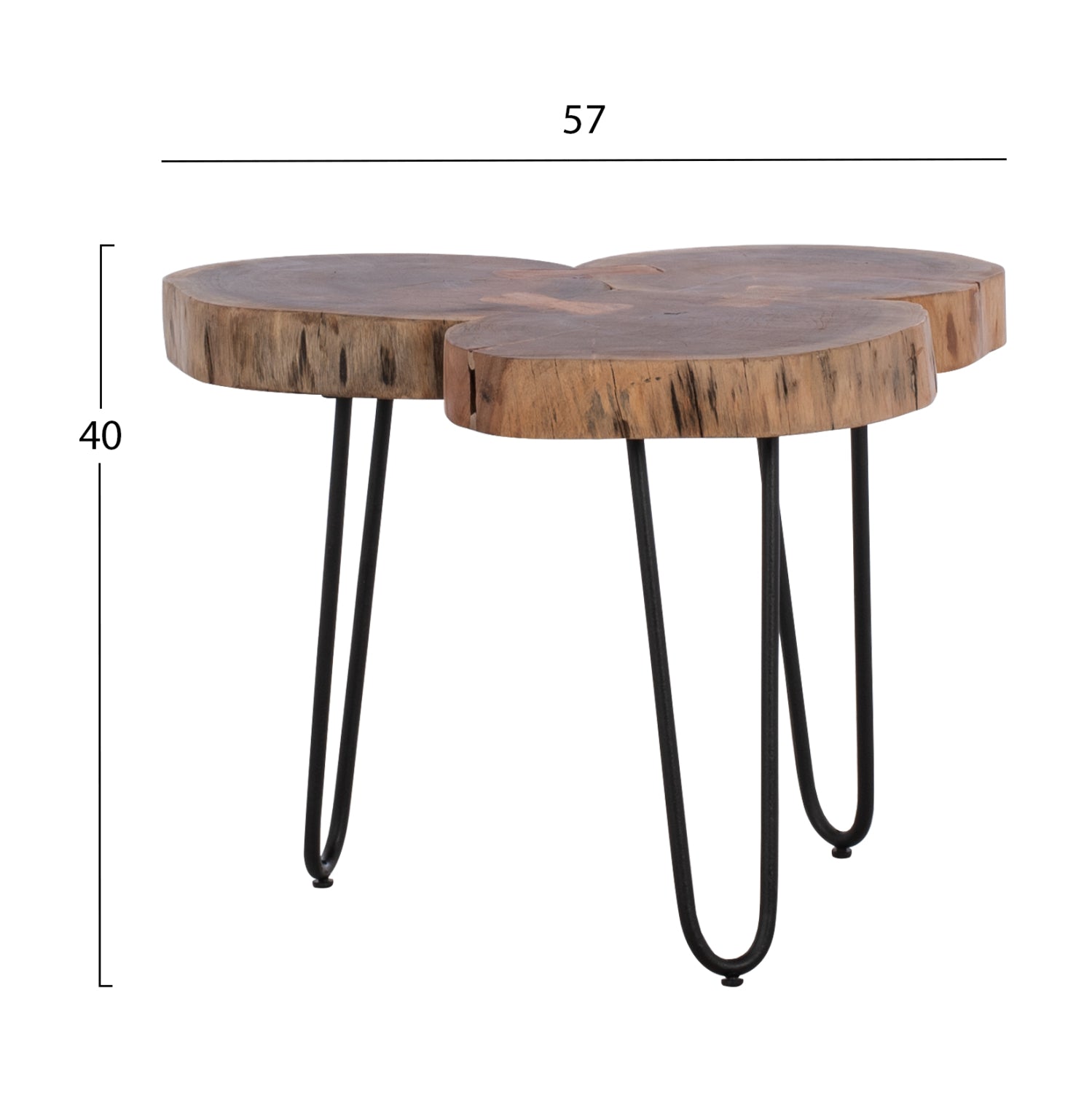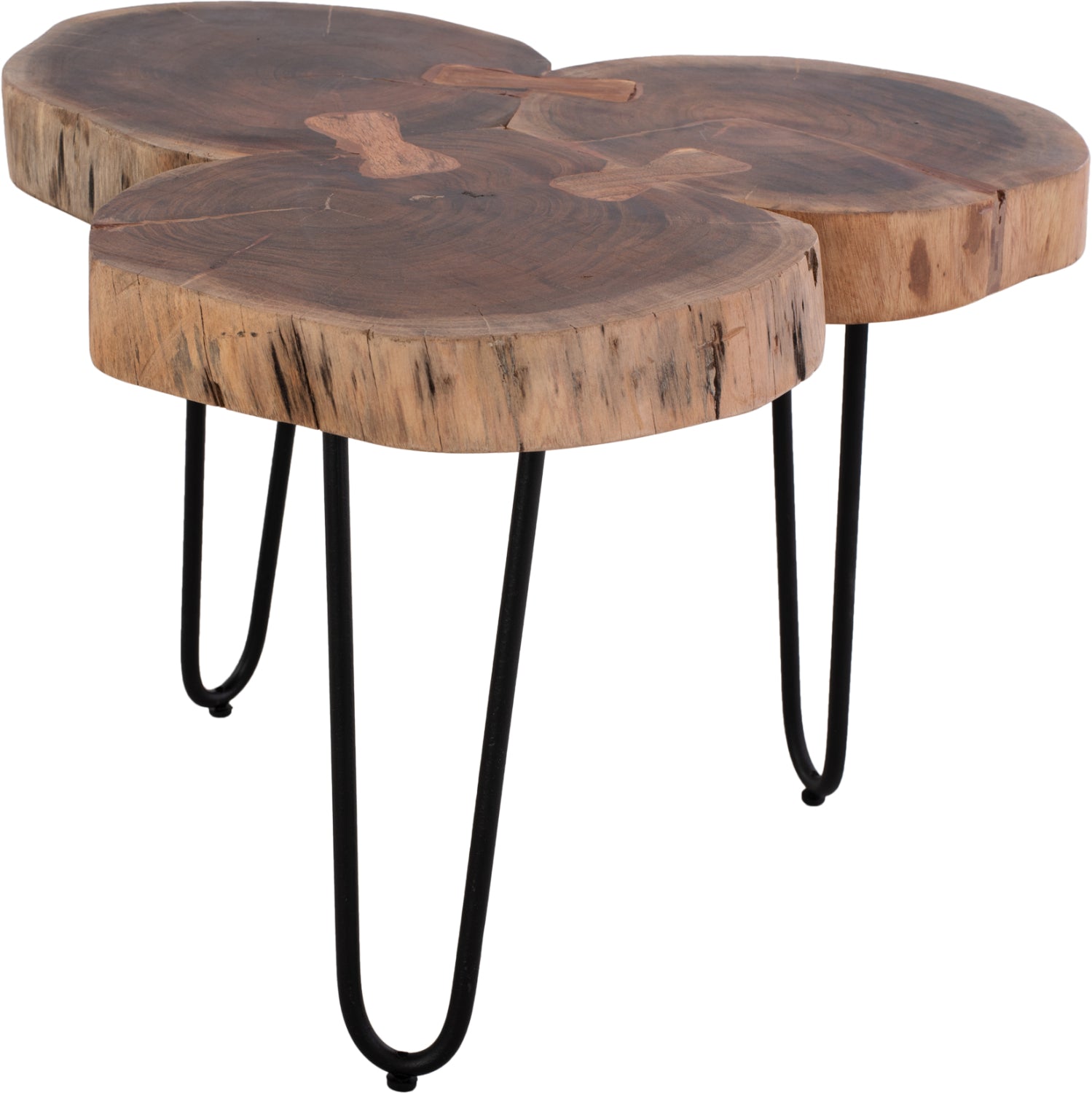 ΗΜ8211.11 τραπεζάκι σαλονιού----- Το τρίποδο τραπεζάκι ΗΜ8211.11 είναι ο ορισμός του ρουστίκ στυλ στο έπιπλο. Το ξύλο είναι στο φυσικό του χρώμα αλλά και στην φυσική του κατάσταση, δηλαδή φέτες από κορμούς των δέντρων. Τα 3 μαύρα μεταλλικά πόδια ολοκληρώνουν αυτή την πολύ απλή και πρακτική υλοποίηση.