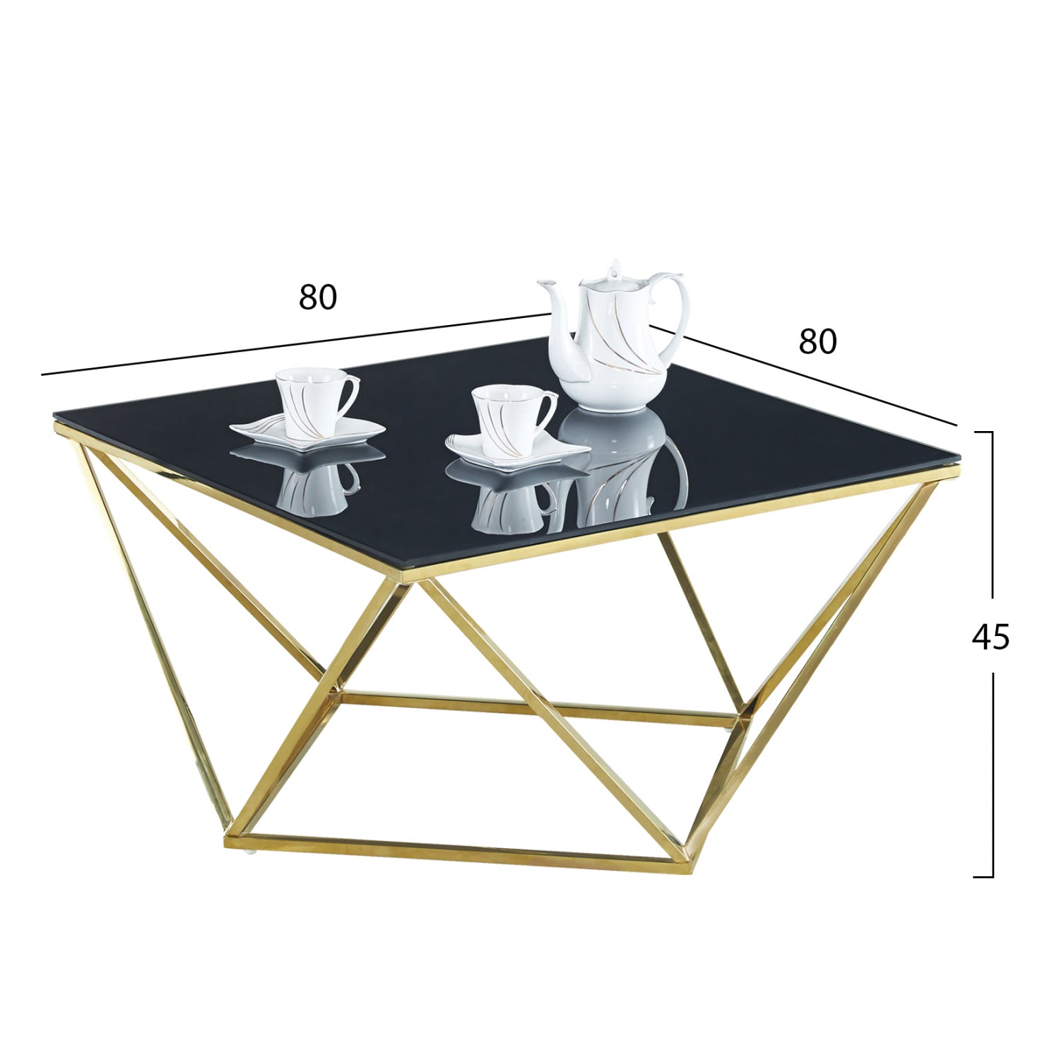ΤΡΑΠΕΖΙ ΣΑΛΟΝΙΟΥ WILLOW HM8613.02 ΜΕ ΜΑΥΡΟ ΓΥΑΛΙ ΚΑΙ ΕΠΙΧΡΥΣΗ ΒΑΣΗ 80X80X45 EK.