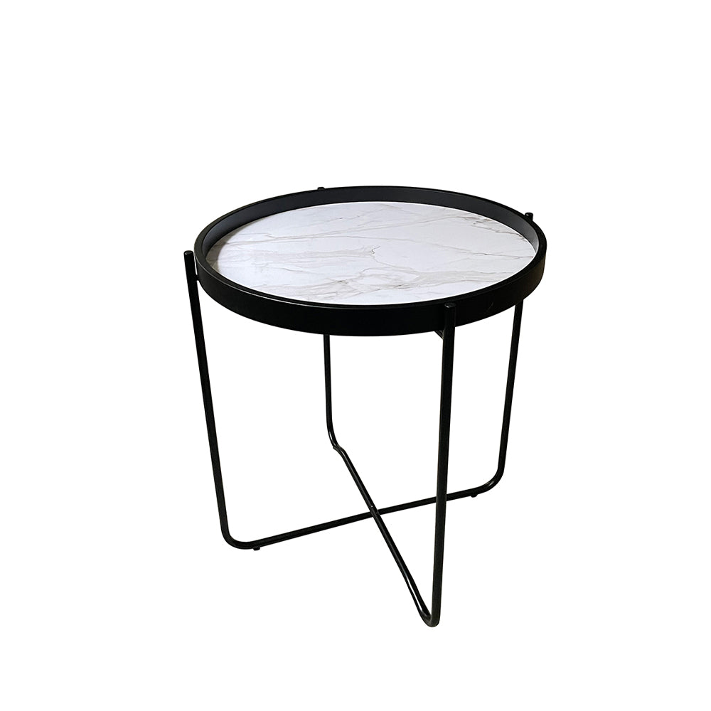 ALABASTER SIDE TABLE ΛΕΥΚΟ ΜΕ PATTERN ΜΑΥΡΟ D53xH55cm