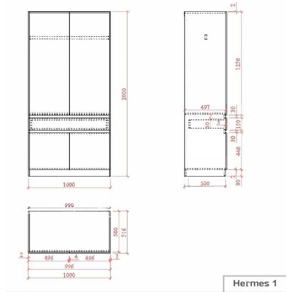 HERMES ΝΤΟΥΛΑΠΑ 2ΠΟΡΤΕΣ 1ΣΥΡΤΑΡΙ ARTISAN OAK 100x52xH200cm